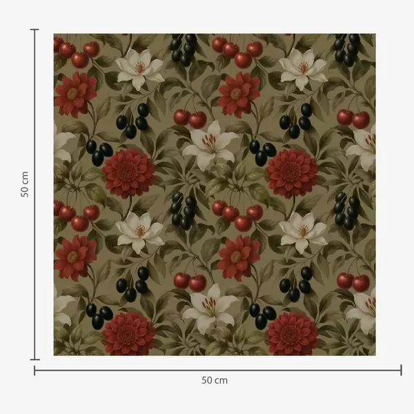 Tapete Kirschen, Blumen und schwarze Oliven Nr. a00384