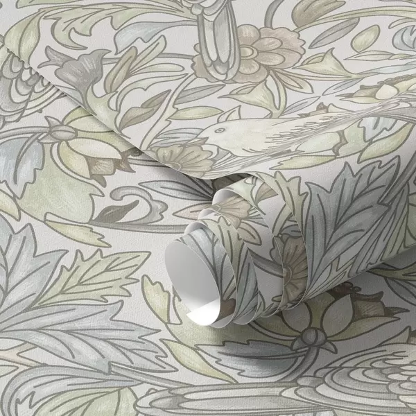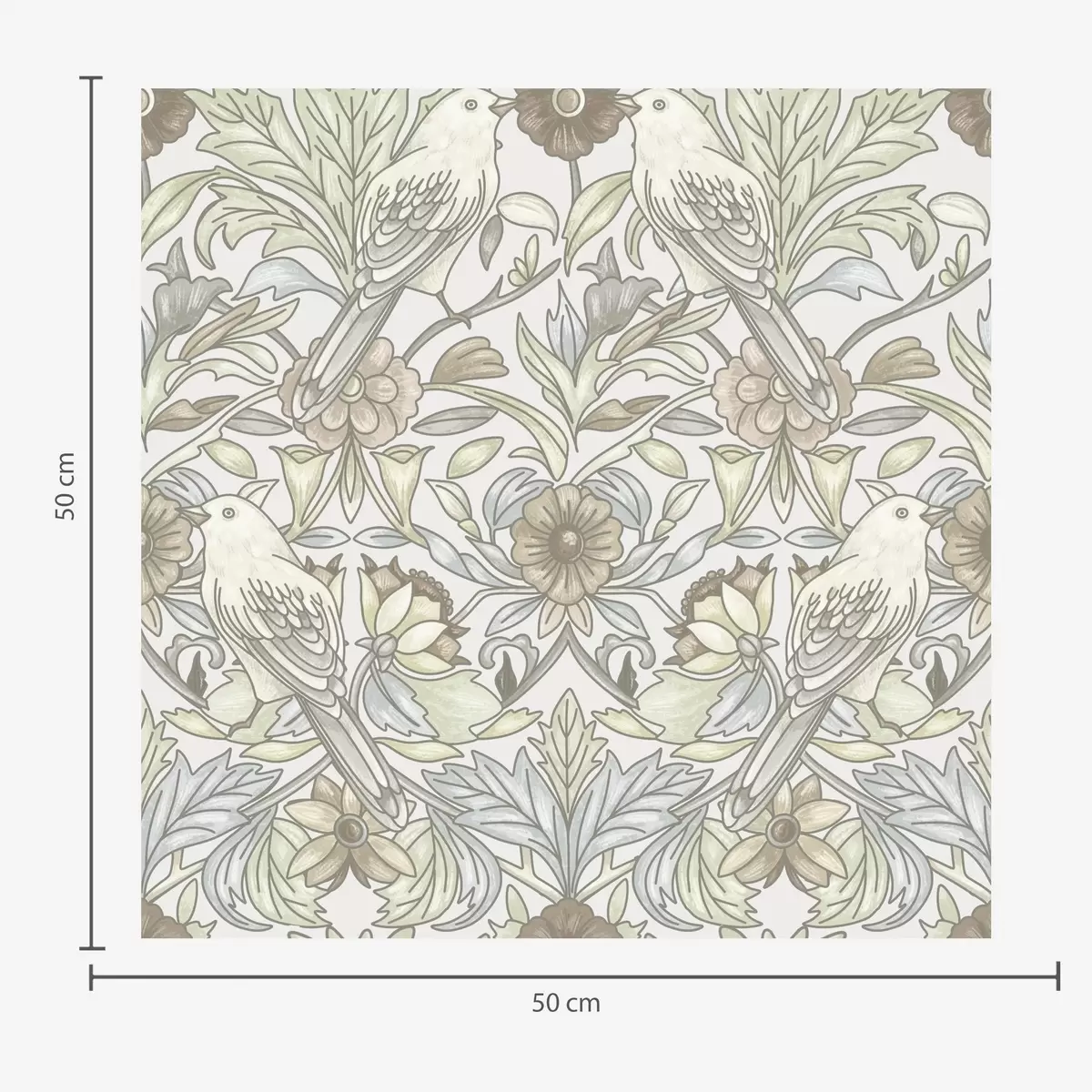 Tapete Vögel im Jugendstil und stilisierte Blumen in Pastell Nr. a00385