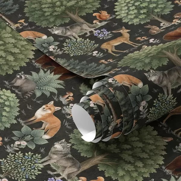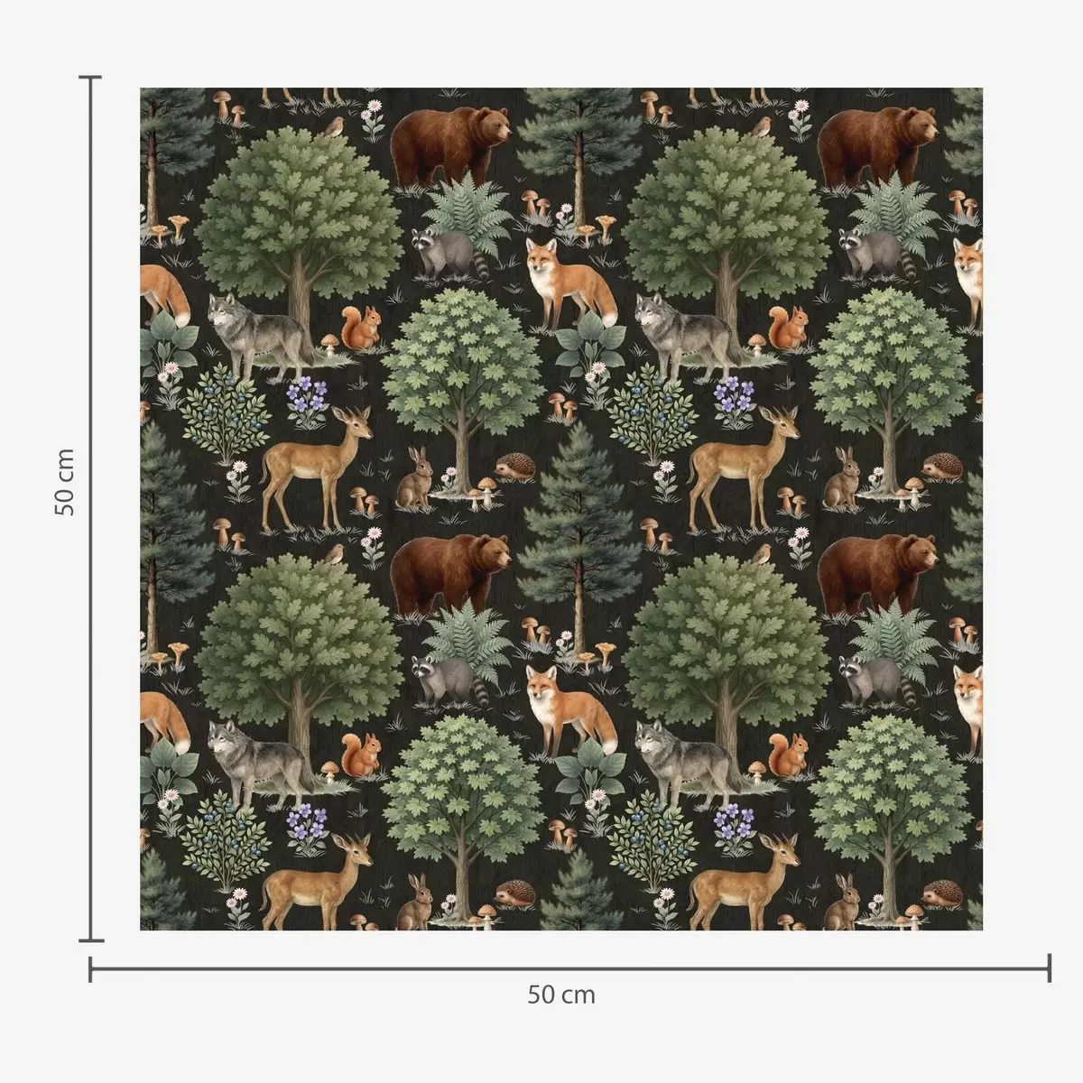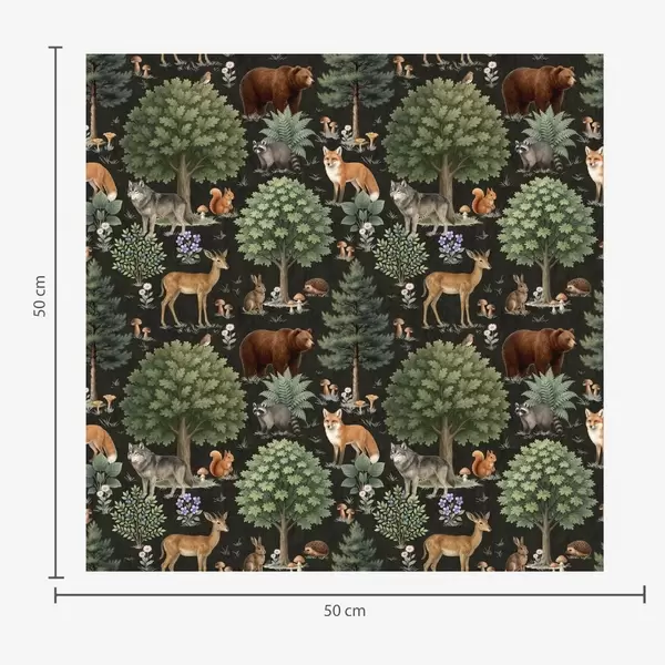 Tapete Aquarell Waldtiere mit Bäumen und Pilzen Nr. a00391