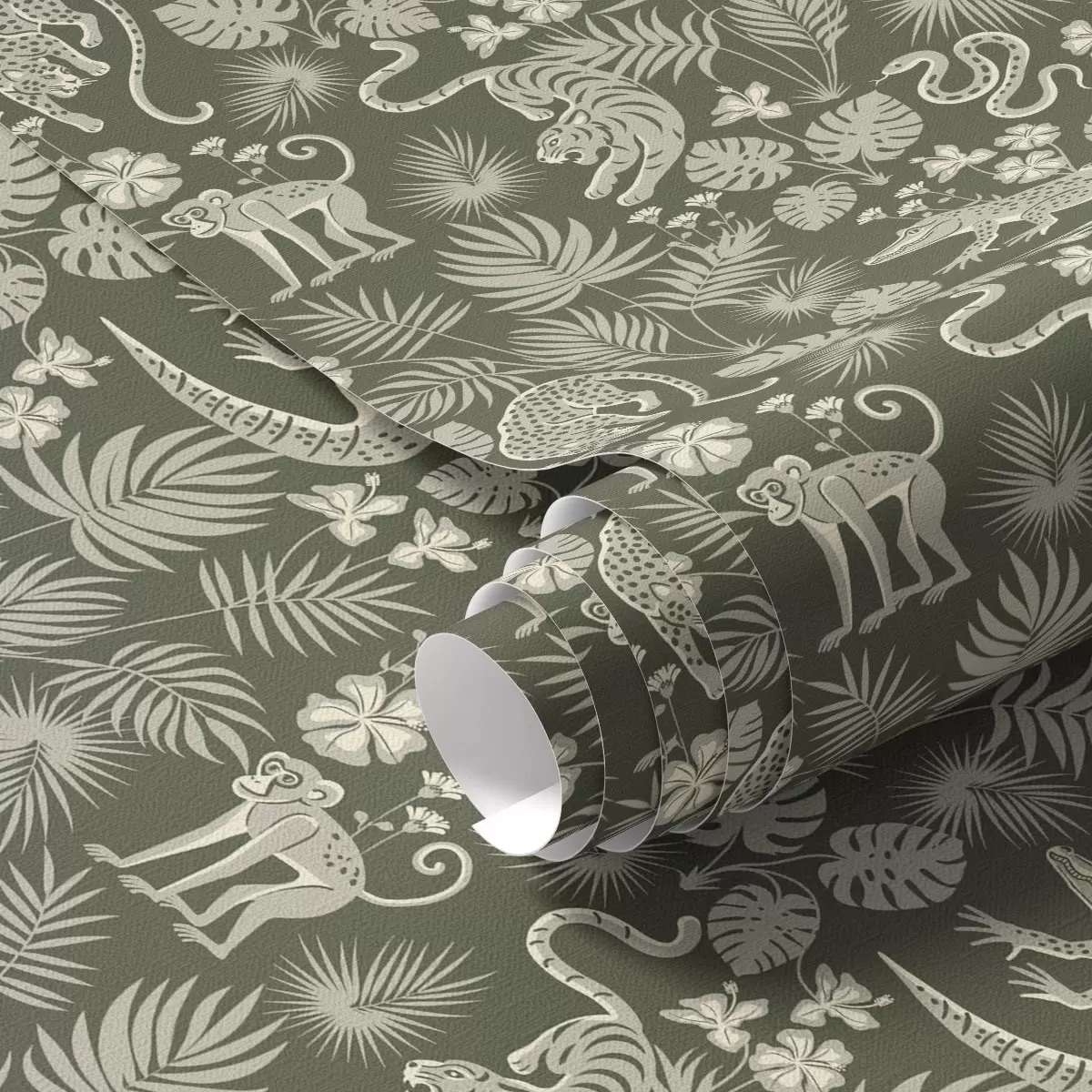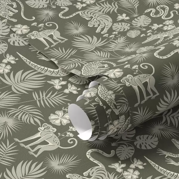 Tapete Silhouetten von Wildtieren zwischen tropischen Blättern Nr. a00404