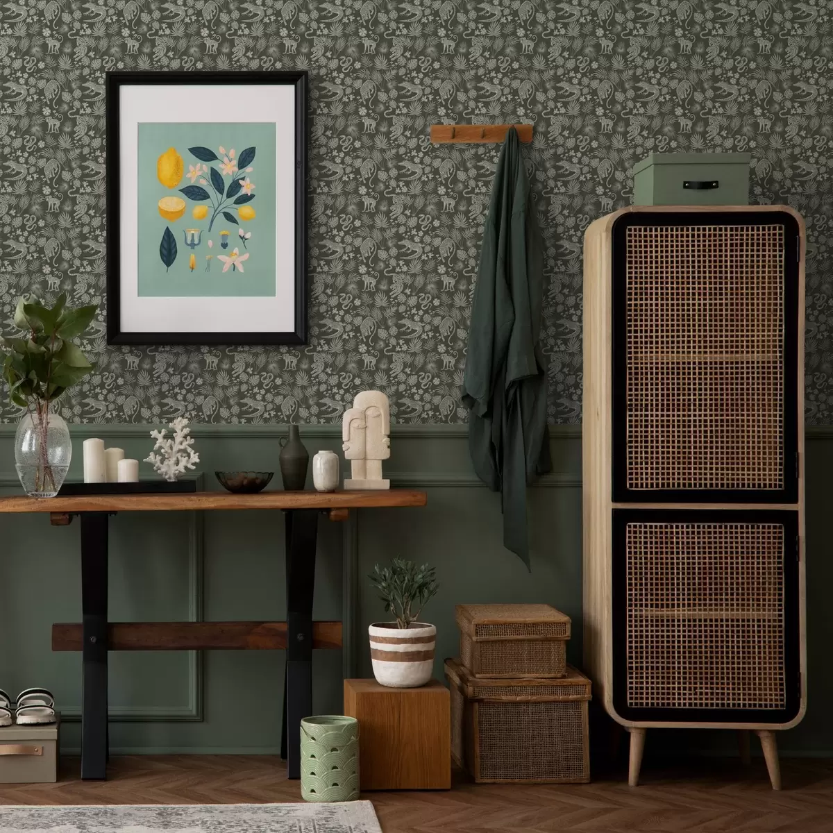 Tapete Silhouetten von Wildtieren zwischen tropischen Blättern Nr. a00404