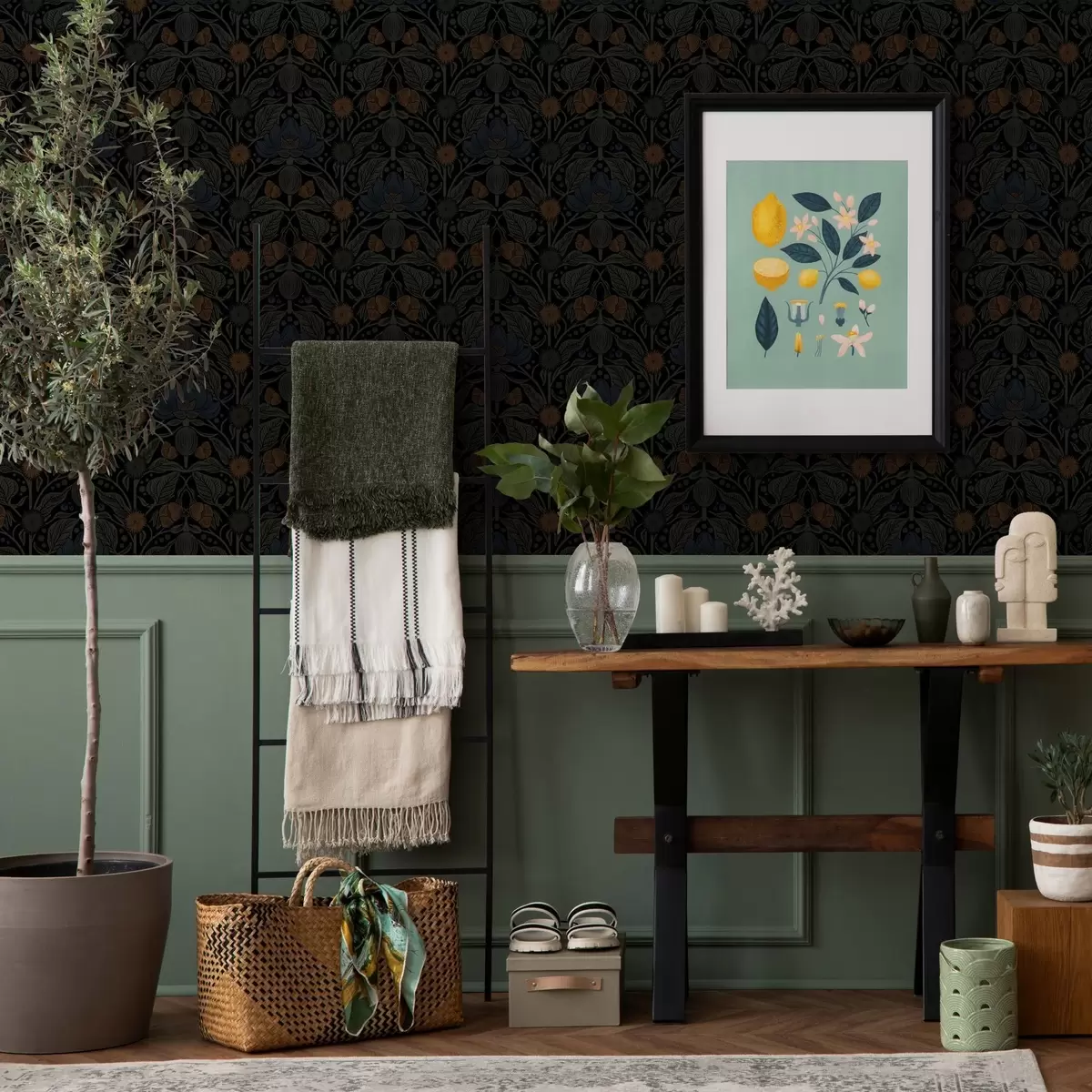 Tapete Dunkles florales Ornament mit orangefarbenen Akzenten Nr. a00411