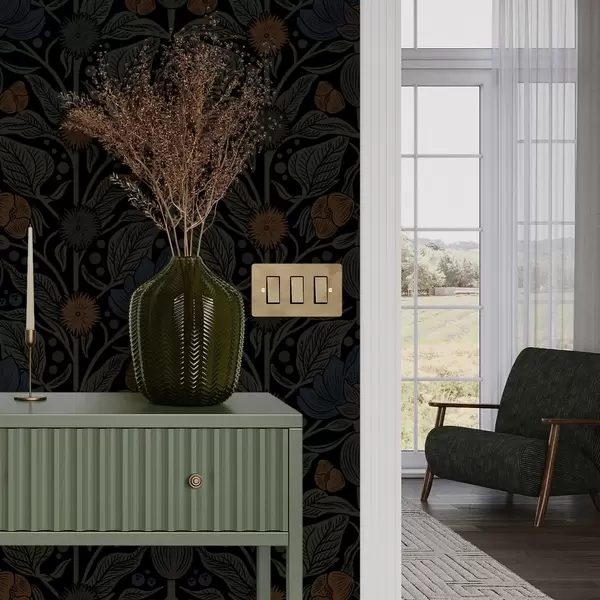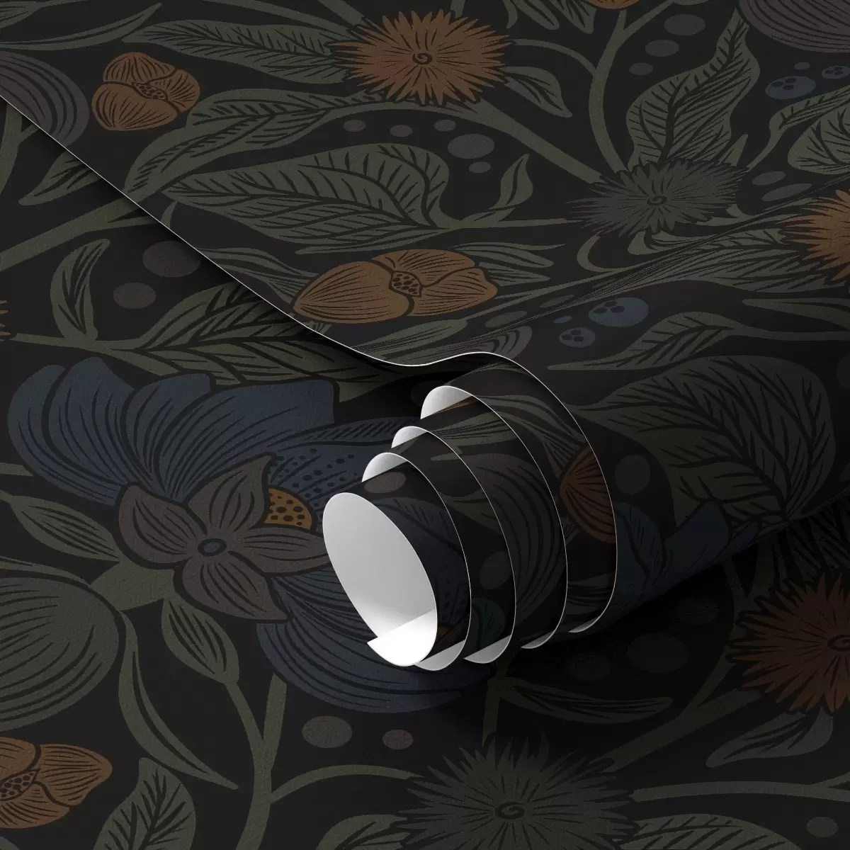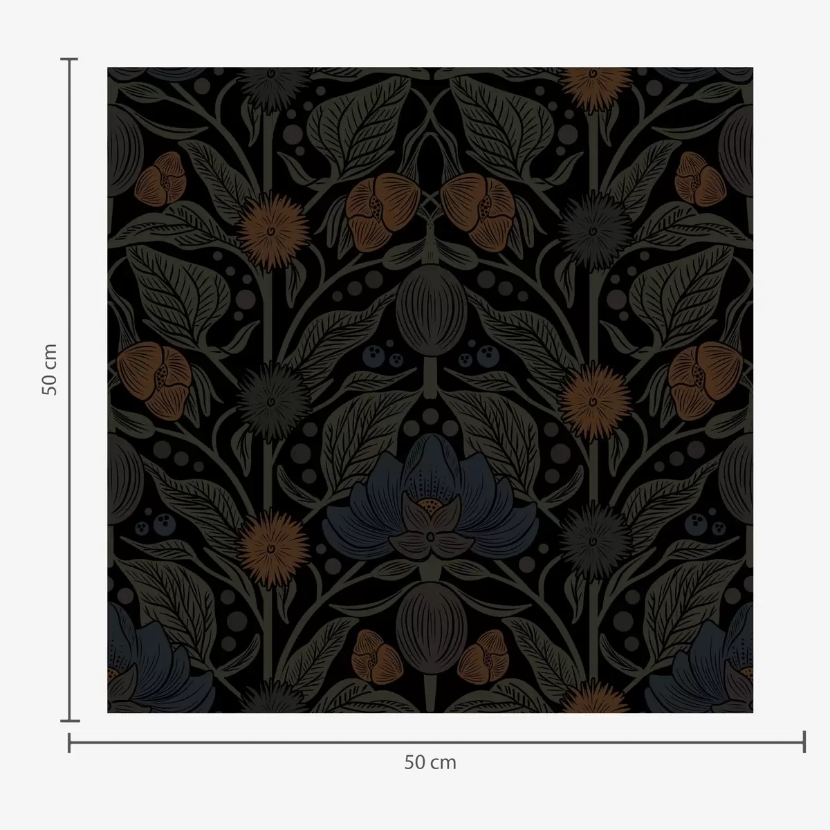 Tapete Dunkles florales Ornament mit orangefarbenen Akzenten Nr. a00411