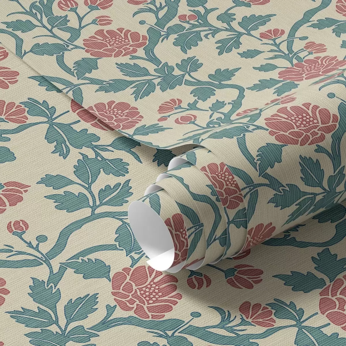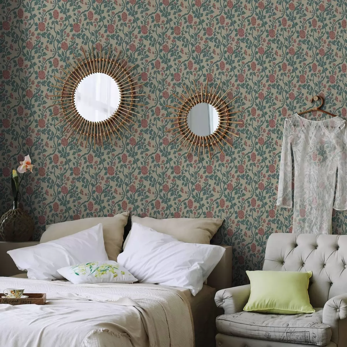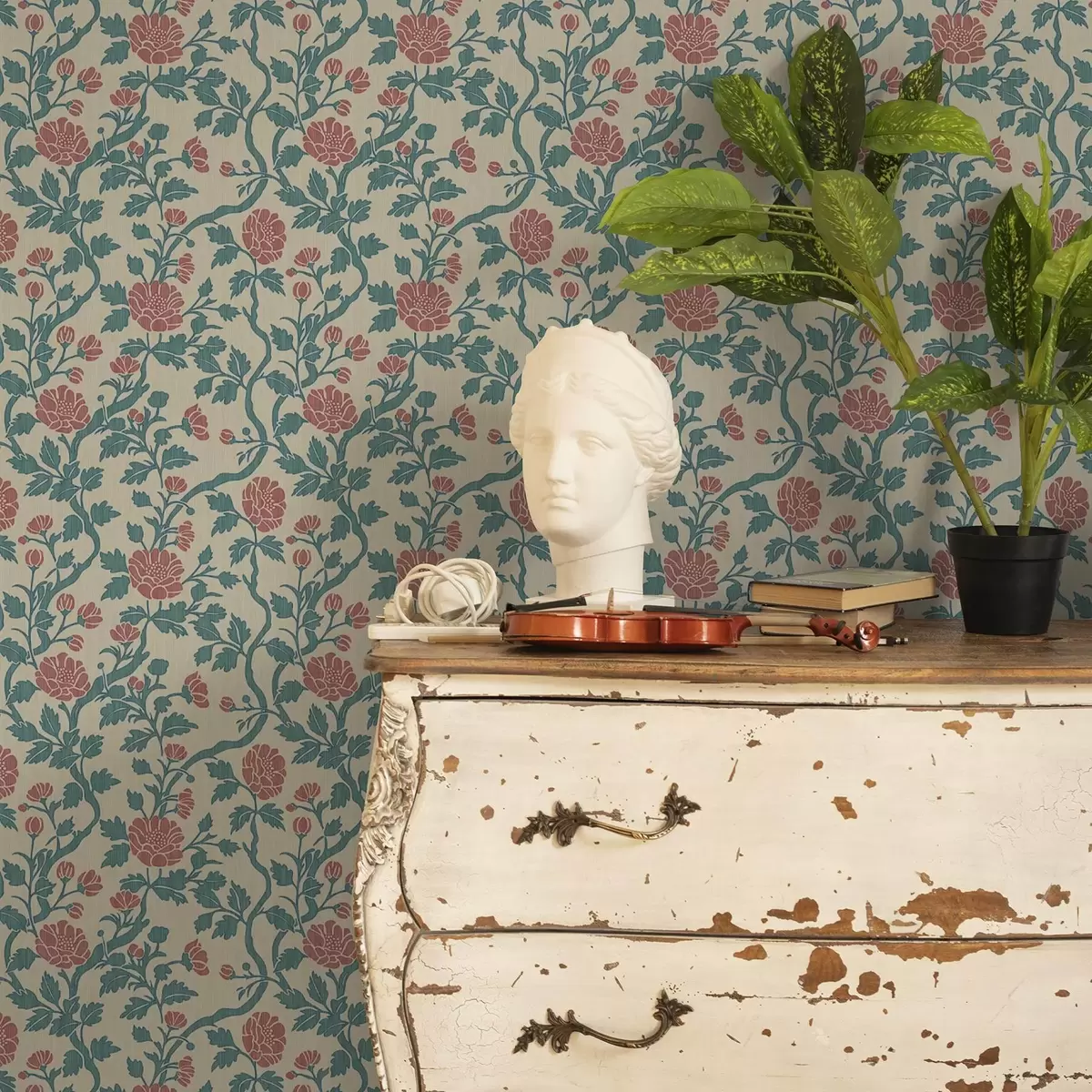 Tapete Ornamentale rosa Blumen auf beigem Hintergrund Nr. a00414
