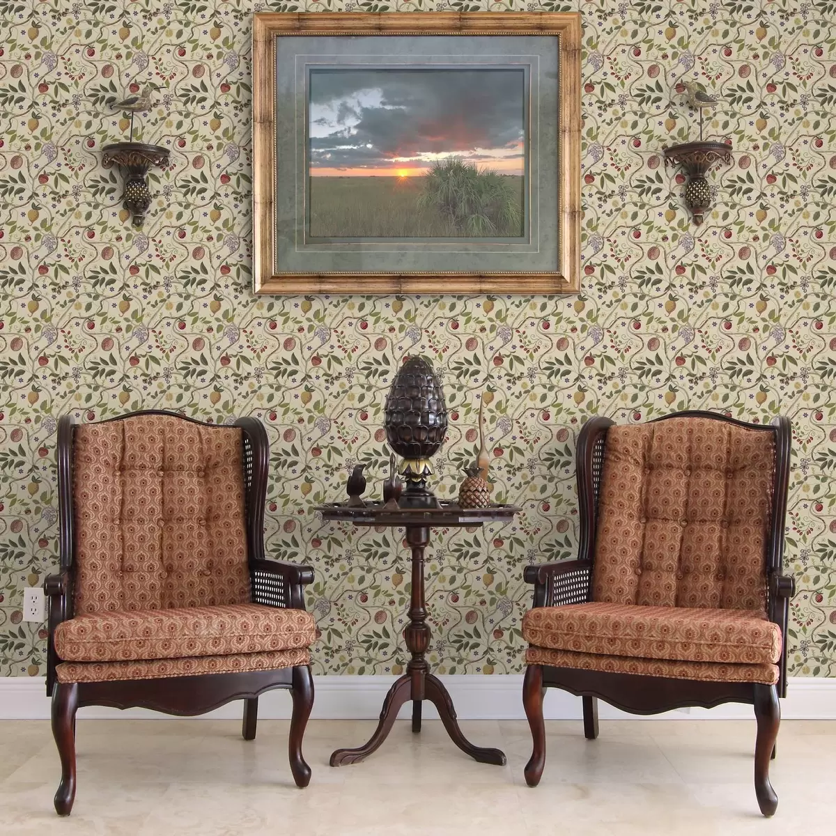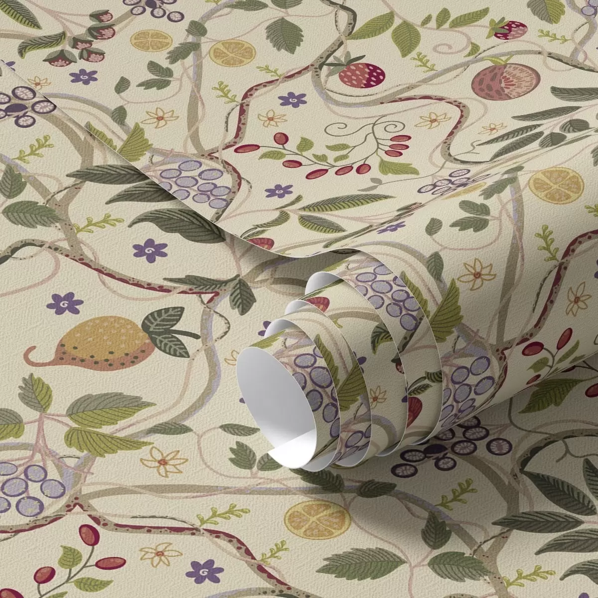 Tapete Obstmuster mit Beeren, Zweigen und Blumen Nr. a00428