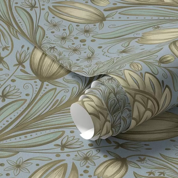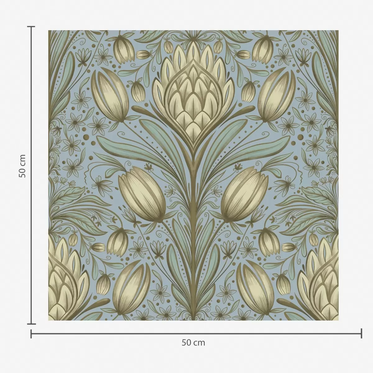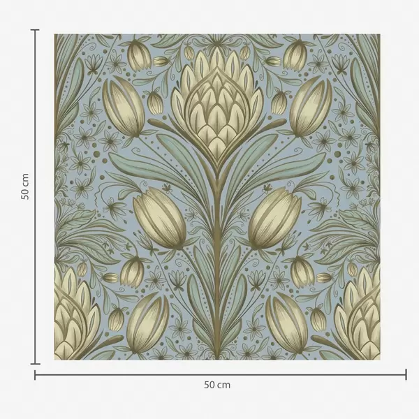 Tapete Blaues Muster mit Artischocken und Tulpen Nr. a00435