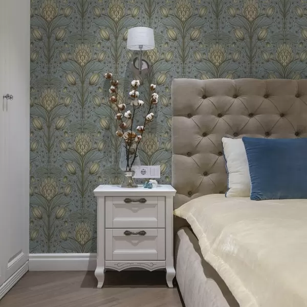 Tapete Blaues Muster mit Artischocken und Tulpen Nr. a00435