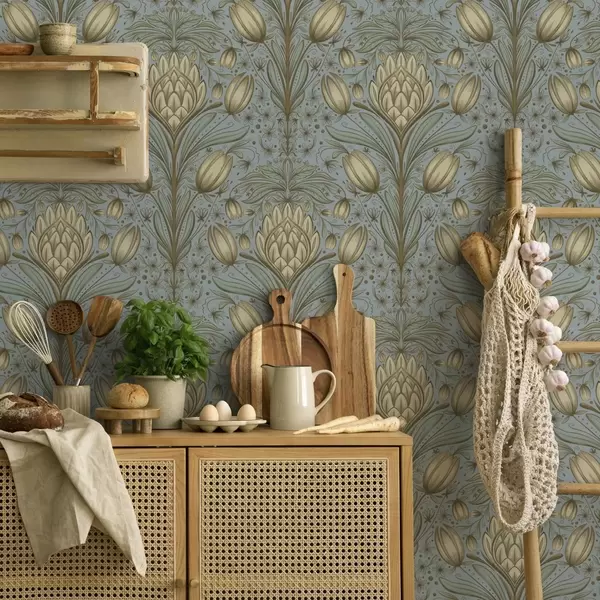 Tapete Blaues Muster mit Artischocken und Tulpen Nr. a00435
