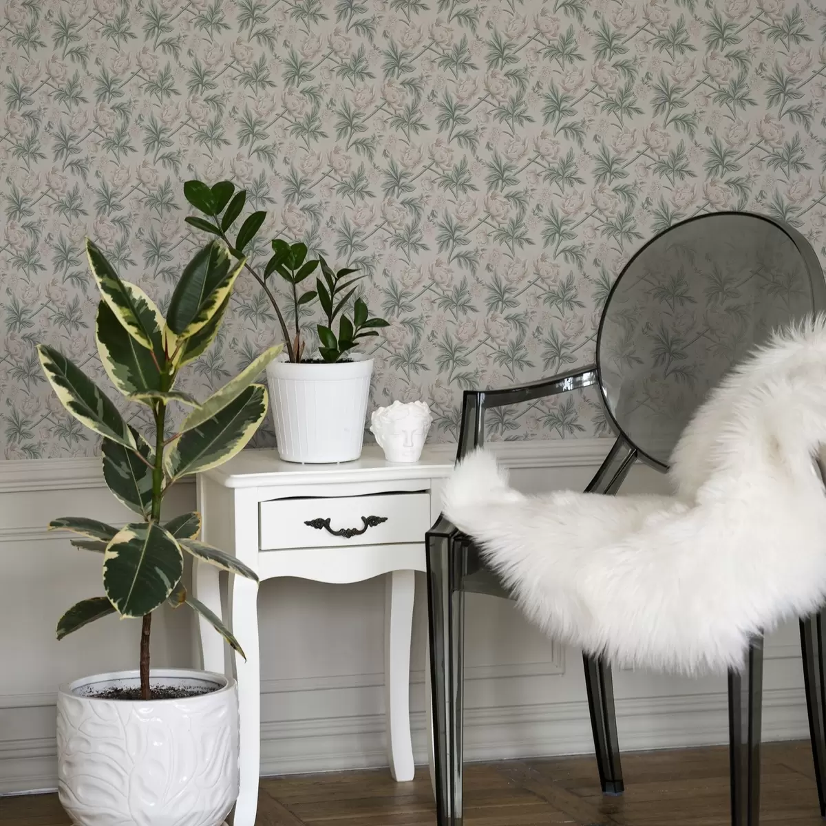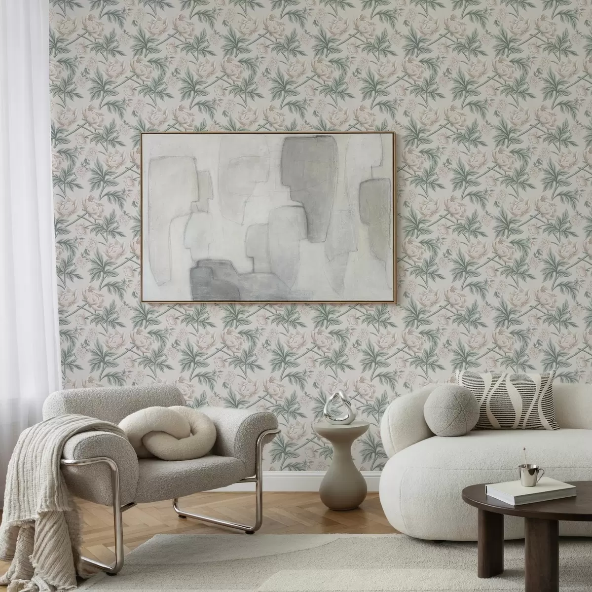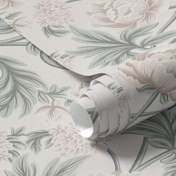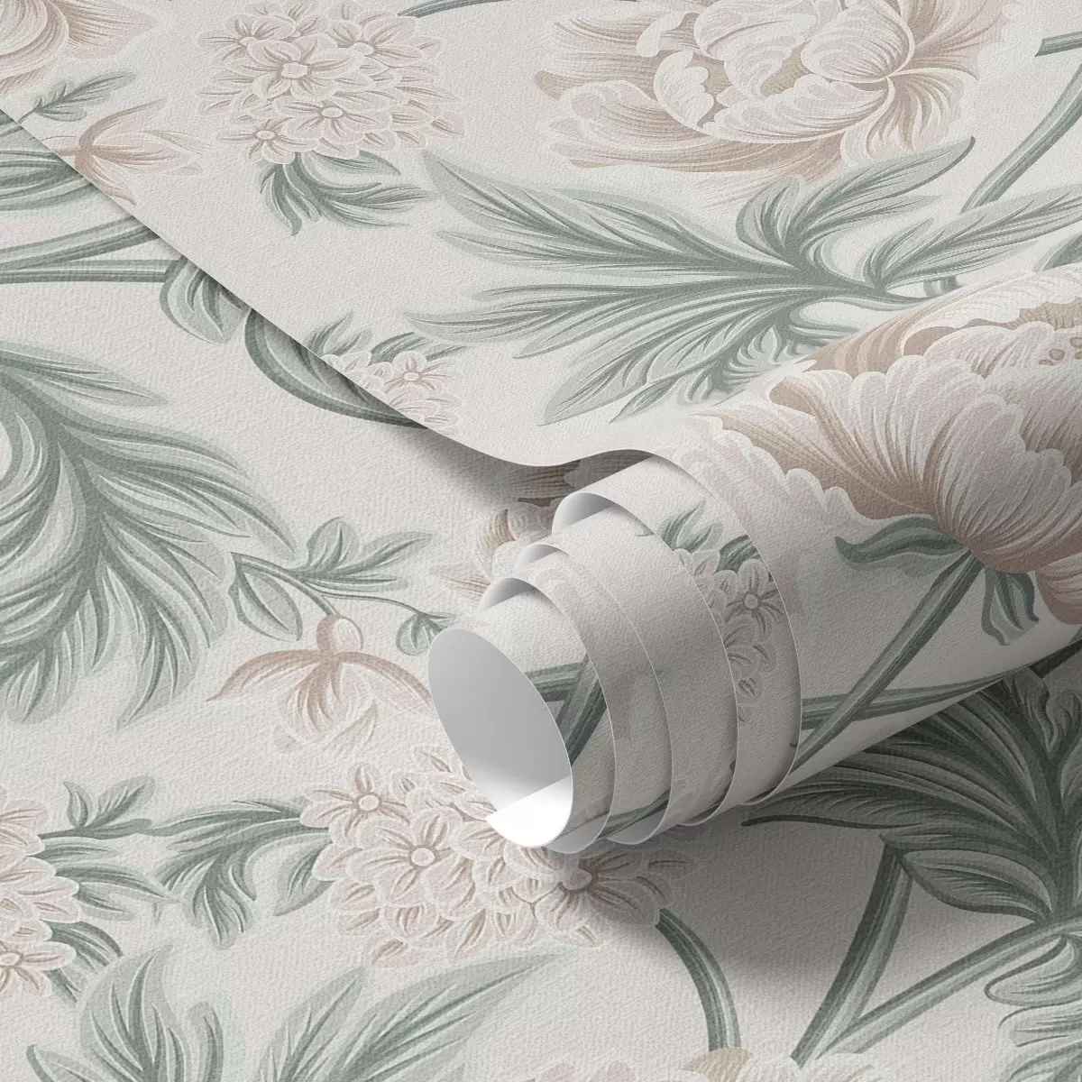 Tapete Üppige Pfingstrosen in hellem Beige und Grün Beige und Grün Nr. a00445
