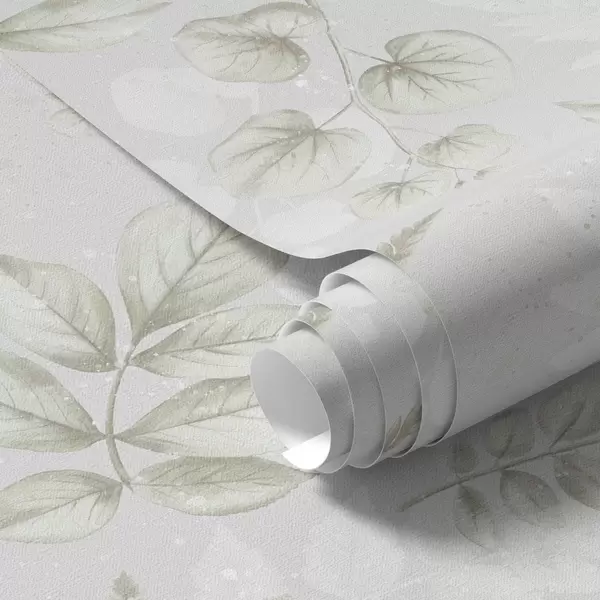 Tapete Helle Aquarellblätter mit Spritzeffekt auf grauem Hintergrund Nr. a00446
