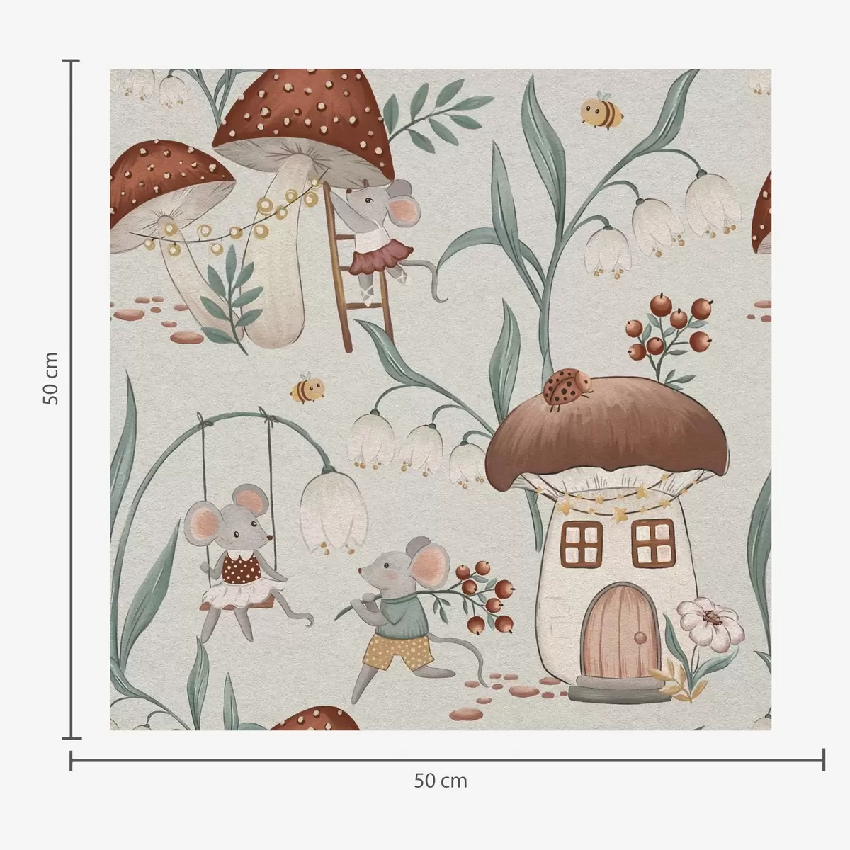 Tapete Niedliche Mäuse und Pilze auf dem Hintergrund einer ausgefallenen Waldlandschaft Nr. a00450