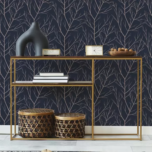 Tapete Zarte rote Zweige auf einem tiefblauen Hintergrund Nr. a00451