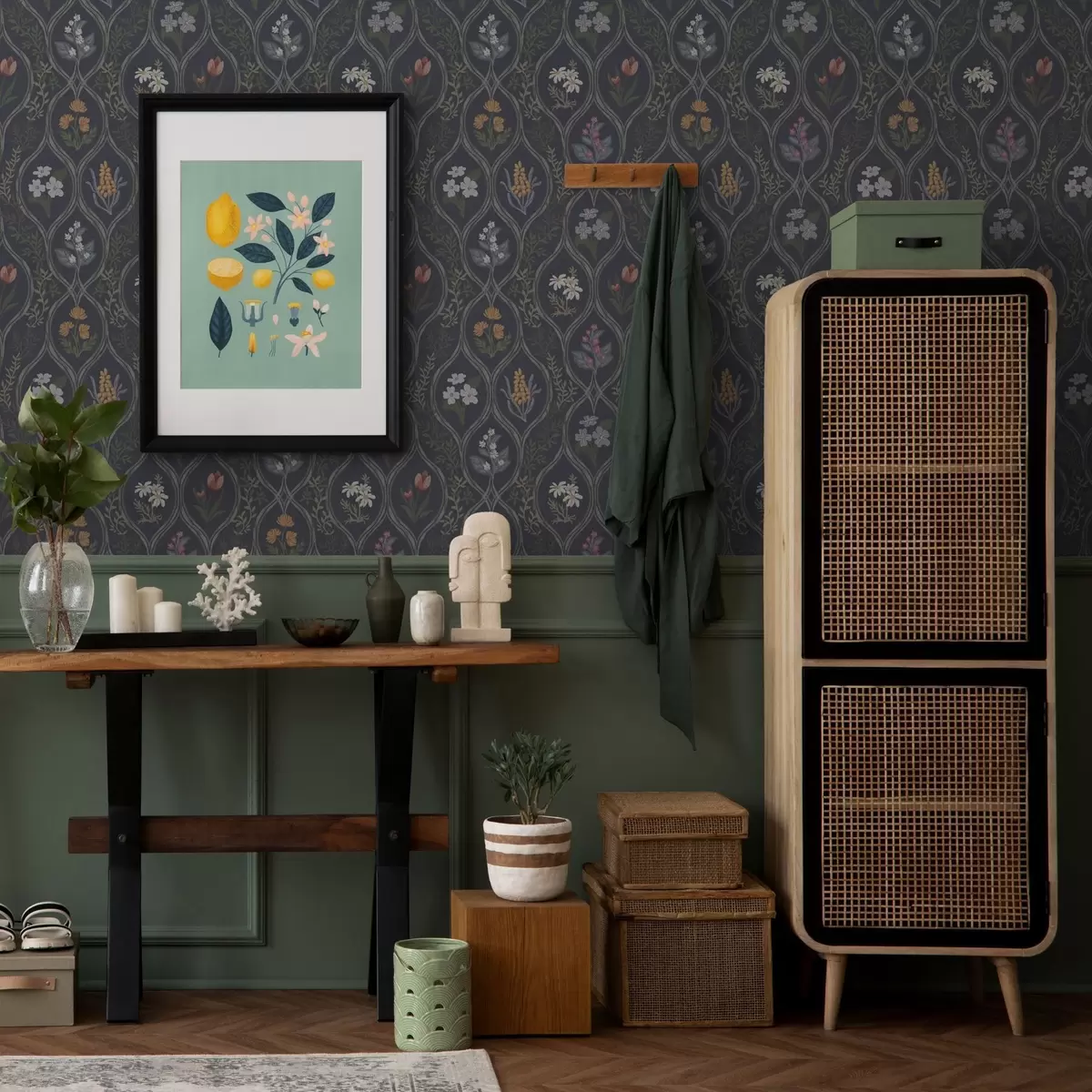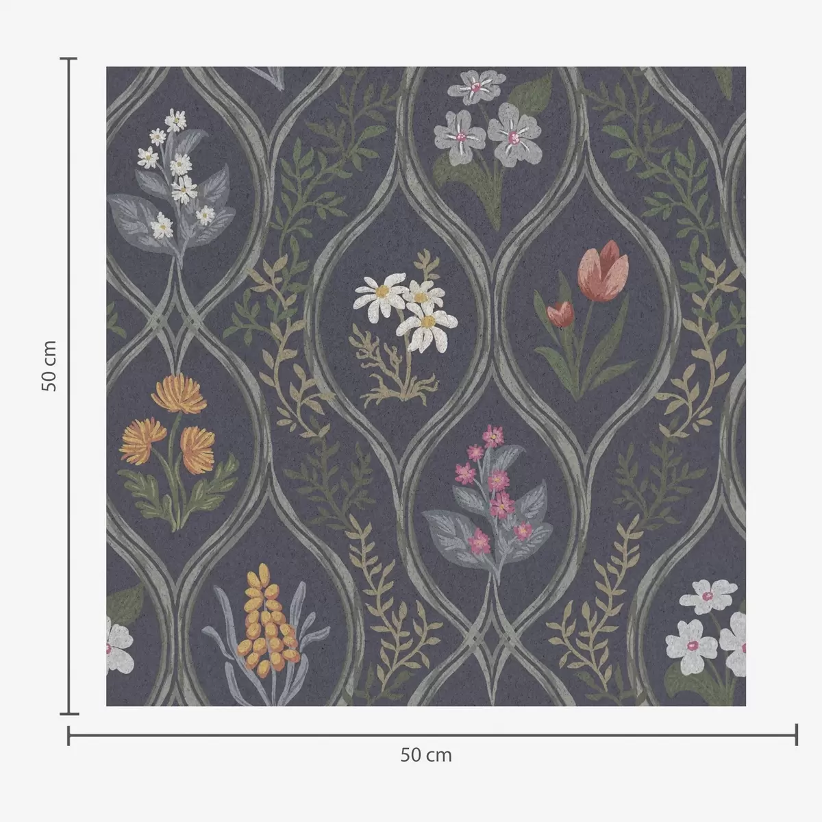 Tapete Dunkler Vintage-Rahmen mit bunten Gartenblumen Nr. a00454