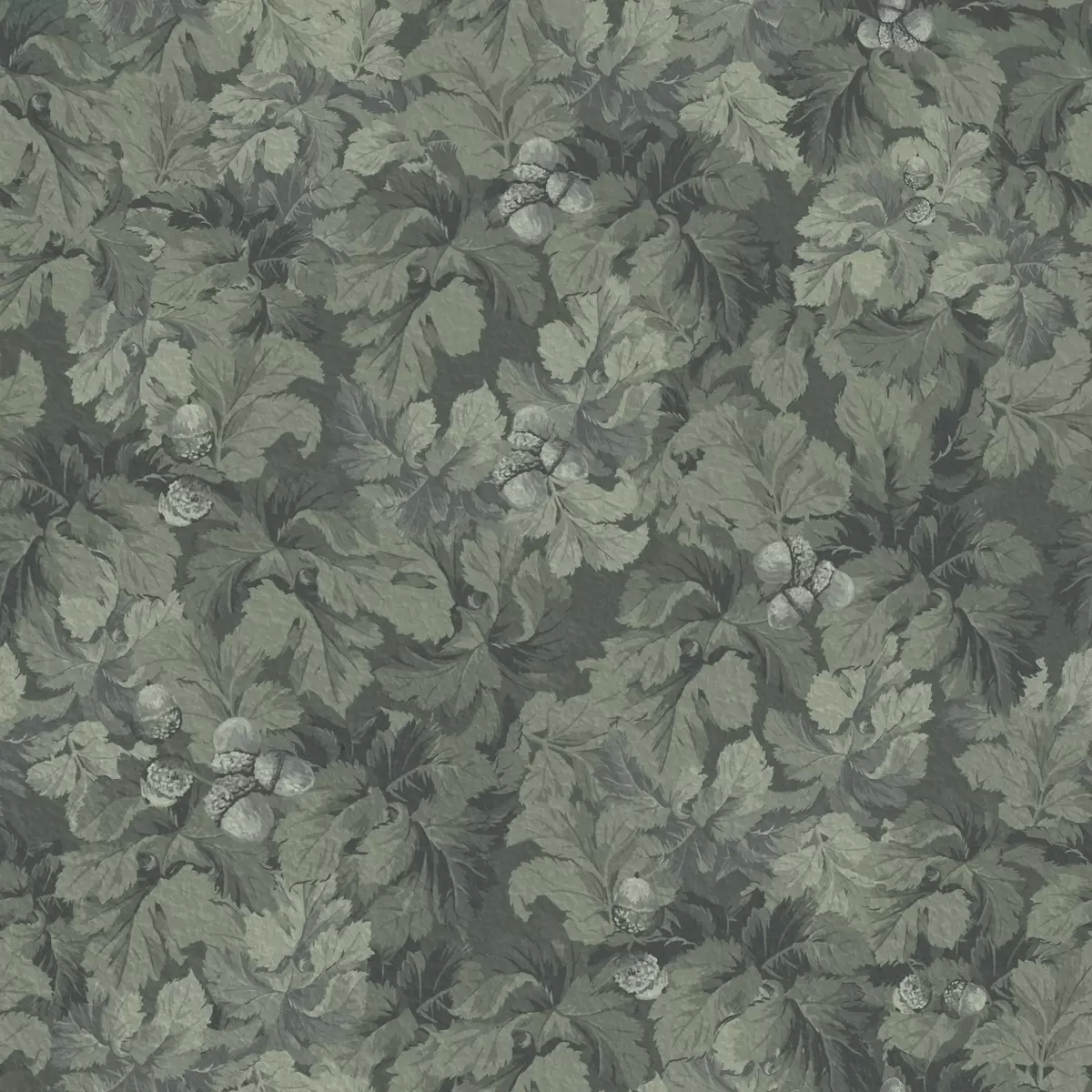 Tapete Dunkle Textur der Blätter mit Eicheln in tiefem Grün Nr. a00461