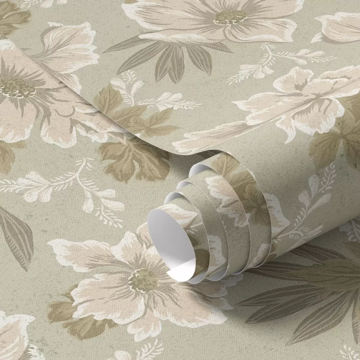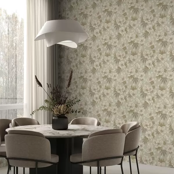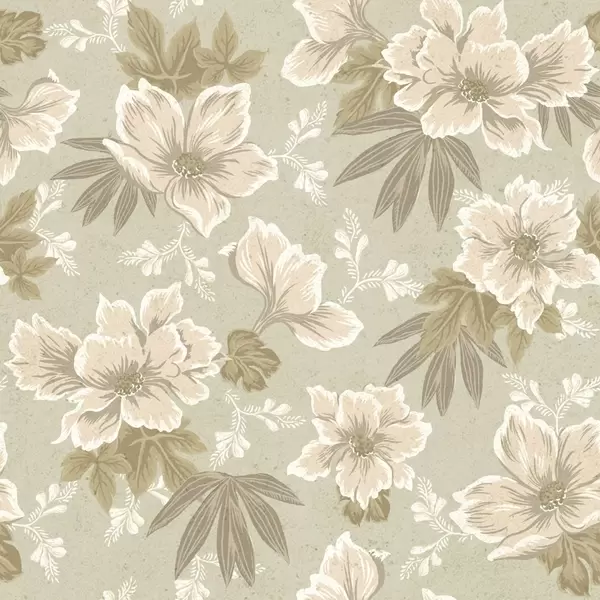 Tapete Cremefarbene Blumen auf olivgrünem Hintergrund Nr. a00462