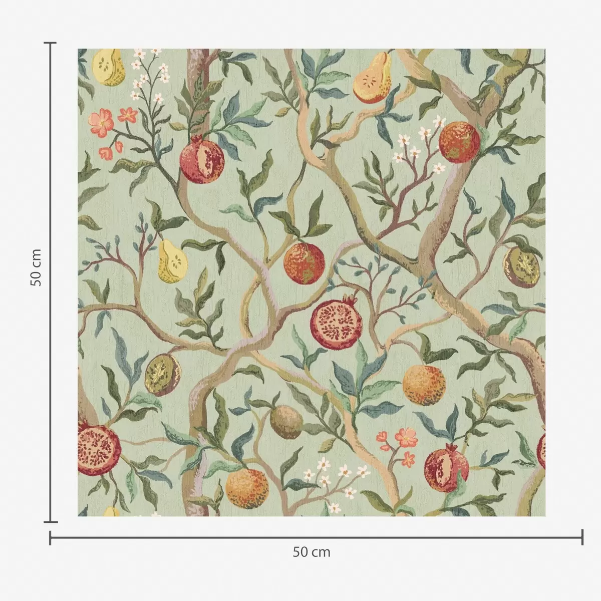 Tapete Granatapfelfrüchte, Birnen und Blumen auf einem blassgrünen Hintergrund Nr. a00465
