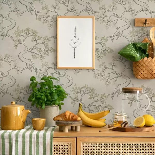 Tapete Einfarbige Bäume mit geschwungenen Stämmen Nr. a00468
