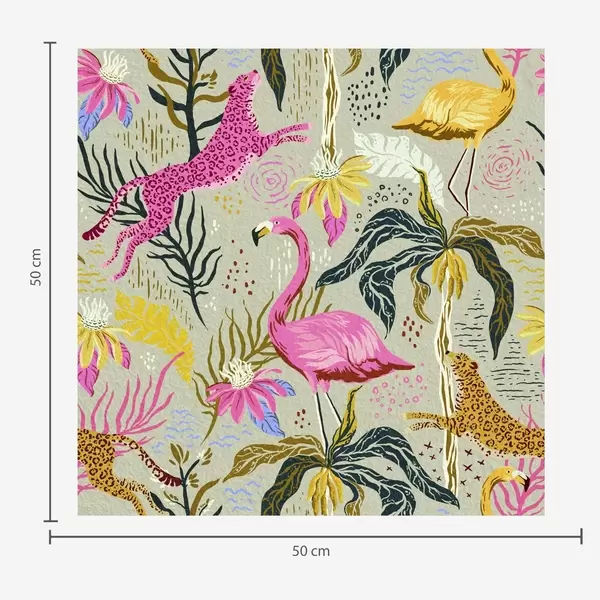 Tapete Leuchtende Flamingos und Leoparden zwischen tropischen Pflanzen Nr. a00470