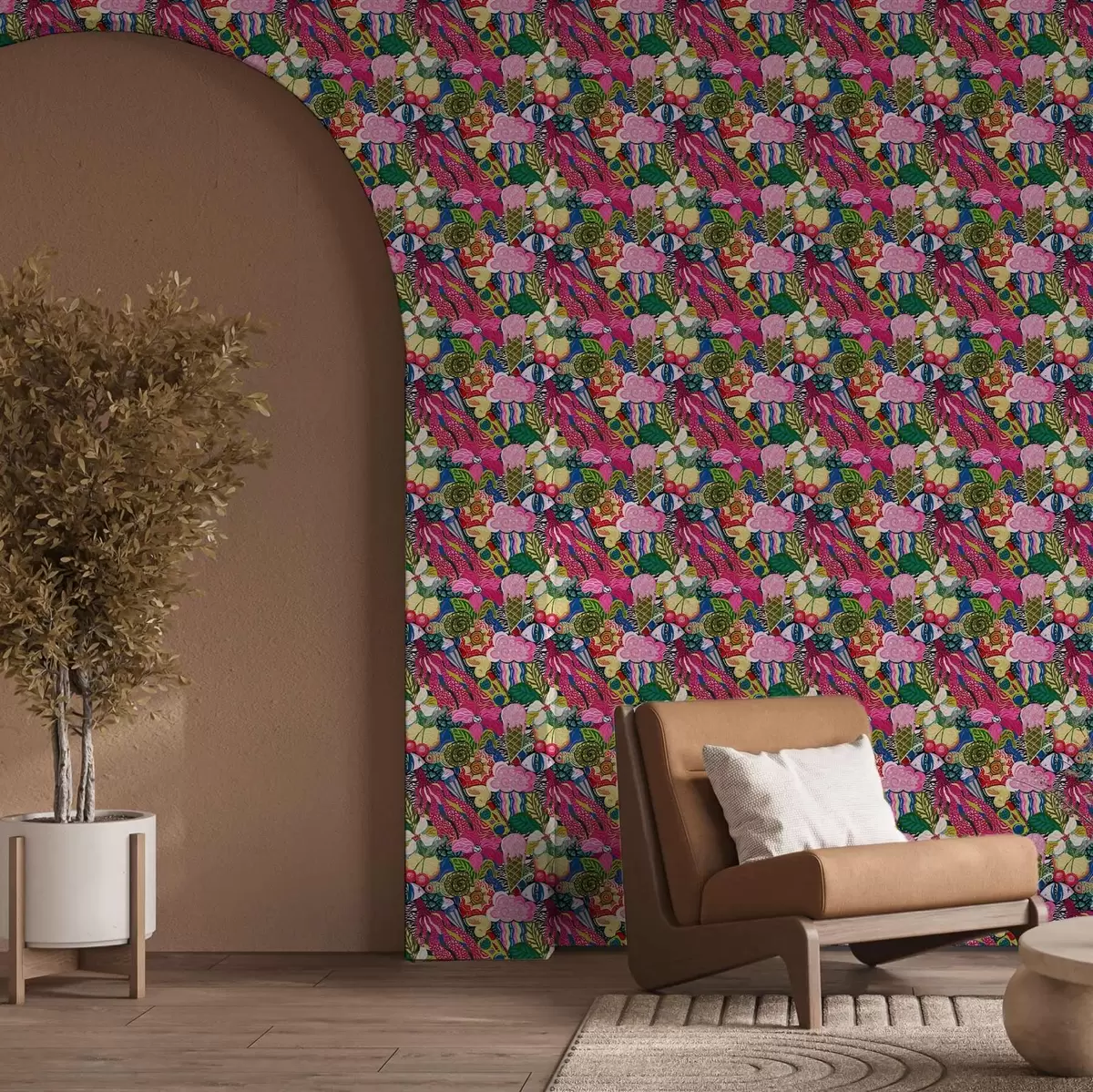 Tapete Abstrakte Pop-Art mit Blumen, Beeren und Mustern Nr. a00471