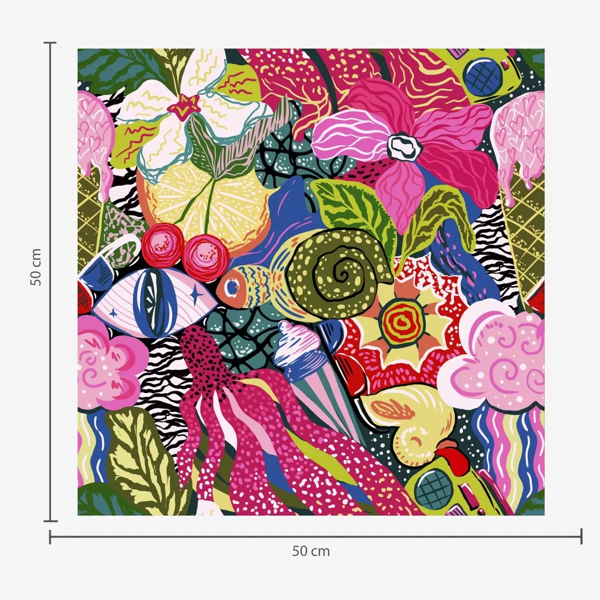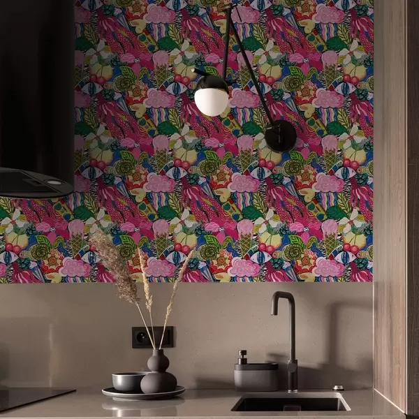 Tapete Abstrakte Pop-Art mit Blumen, Beeren und Mustern Nr. a00471