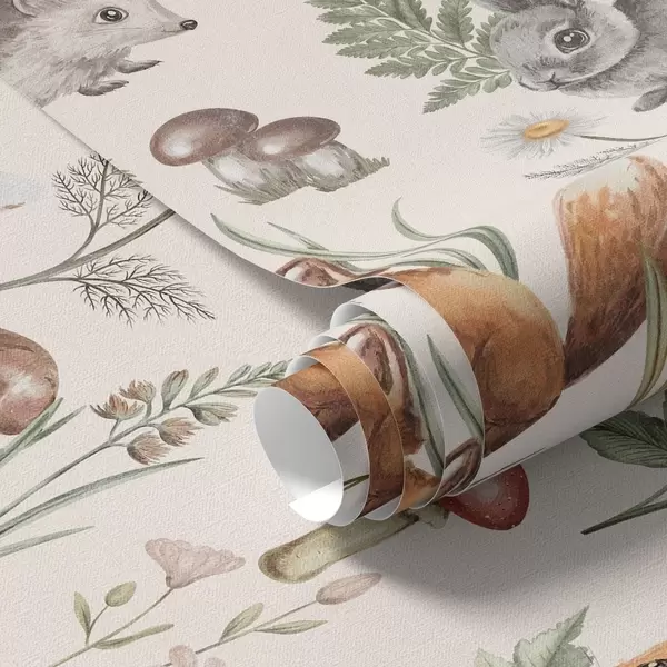 Tapete Waldtiere, Pilze und Pflanzen in märchenhaftem Stil Nr. a00477