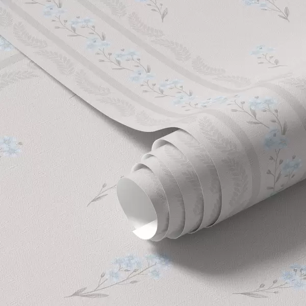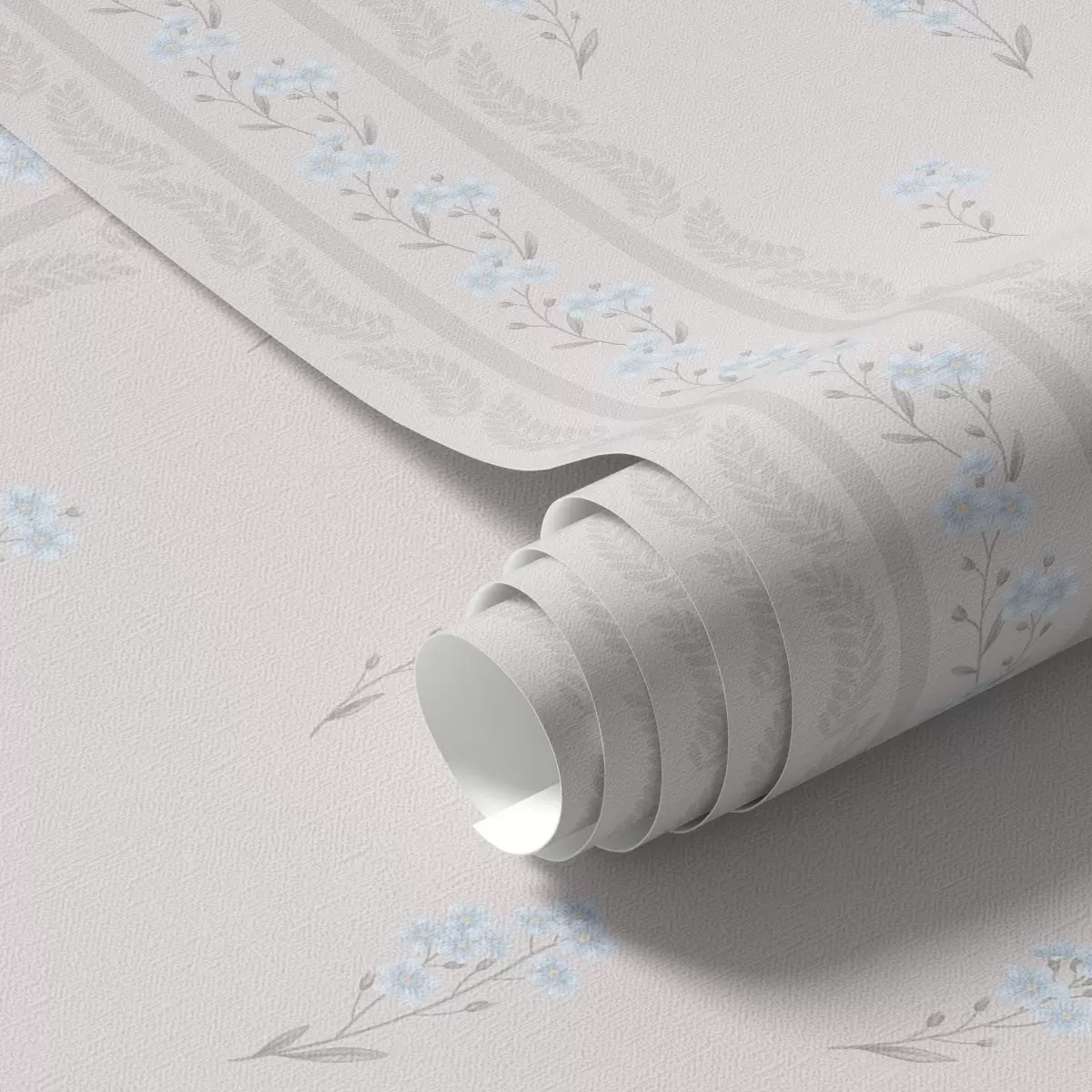 Tapete Rosa Hintergrund mit zarten blauen Blumen und Rand Nr. a00484
