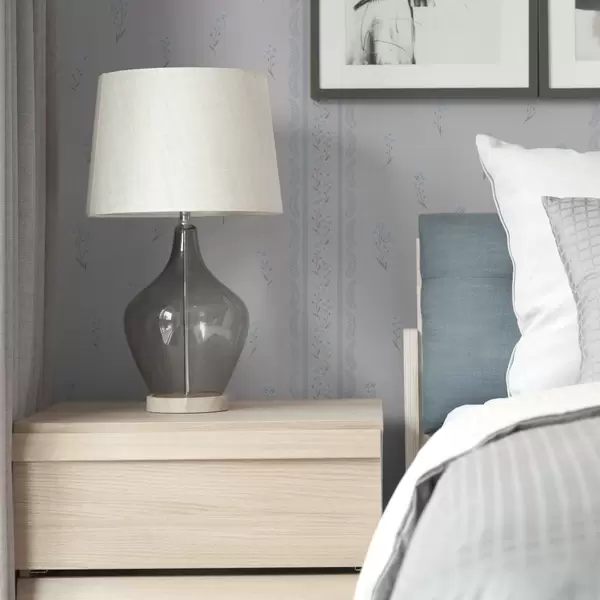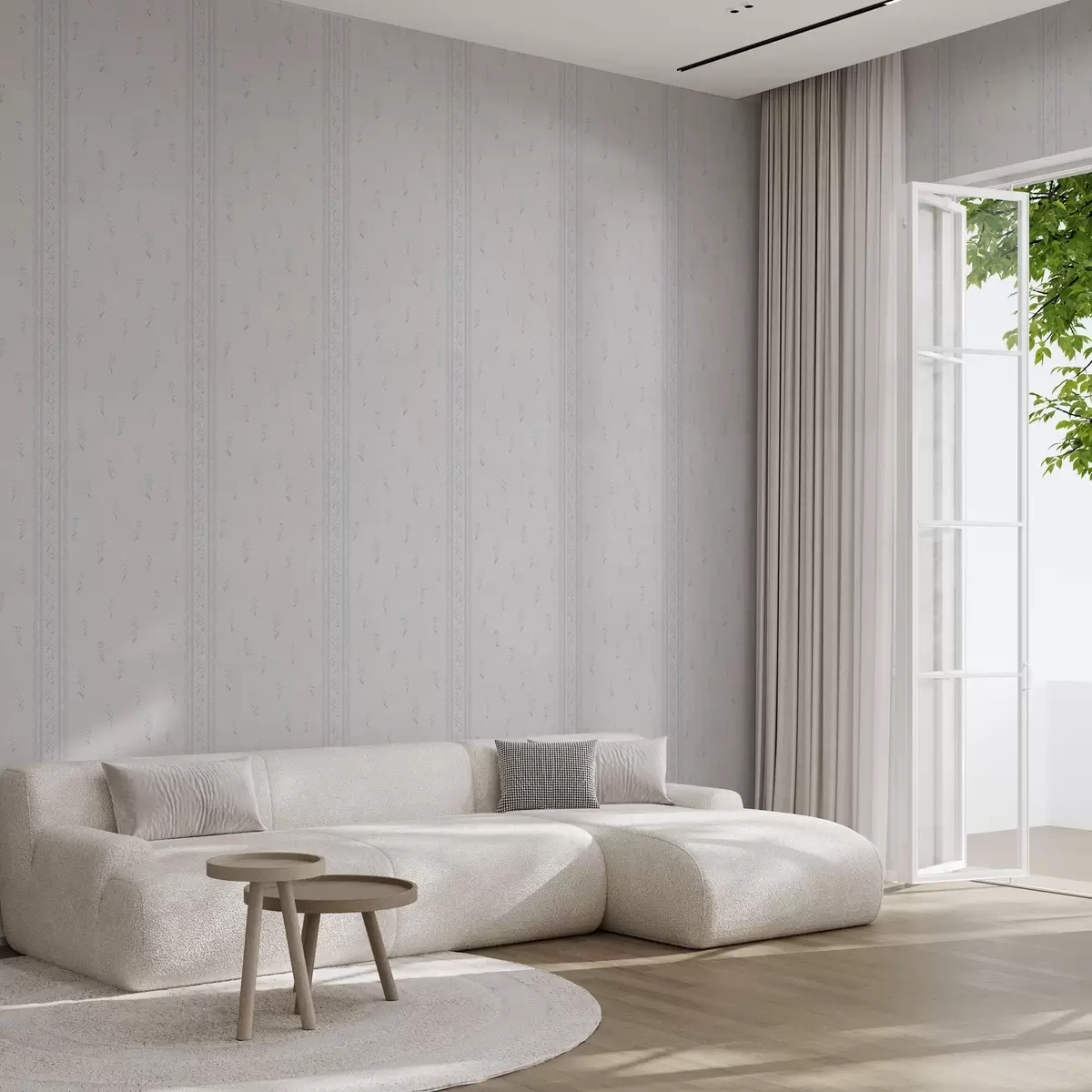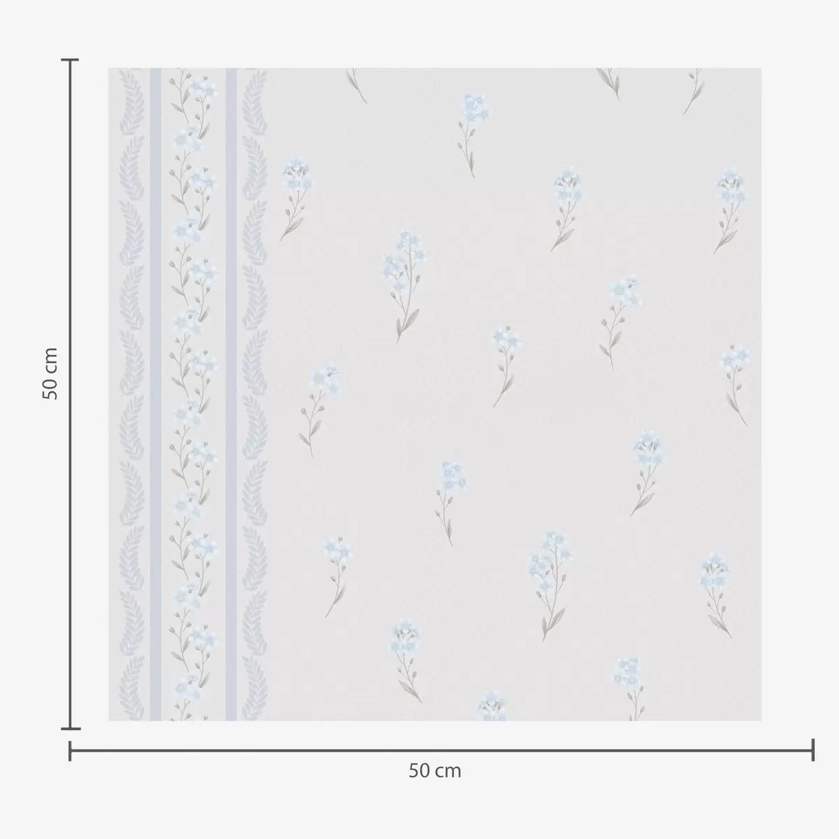 Tapete Weißer Hintergrund mit blauen Blumen und Zierstreifen Nr. a00484v1