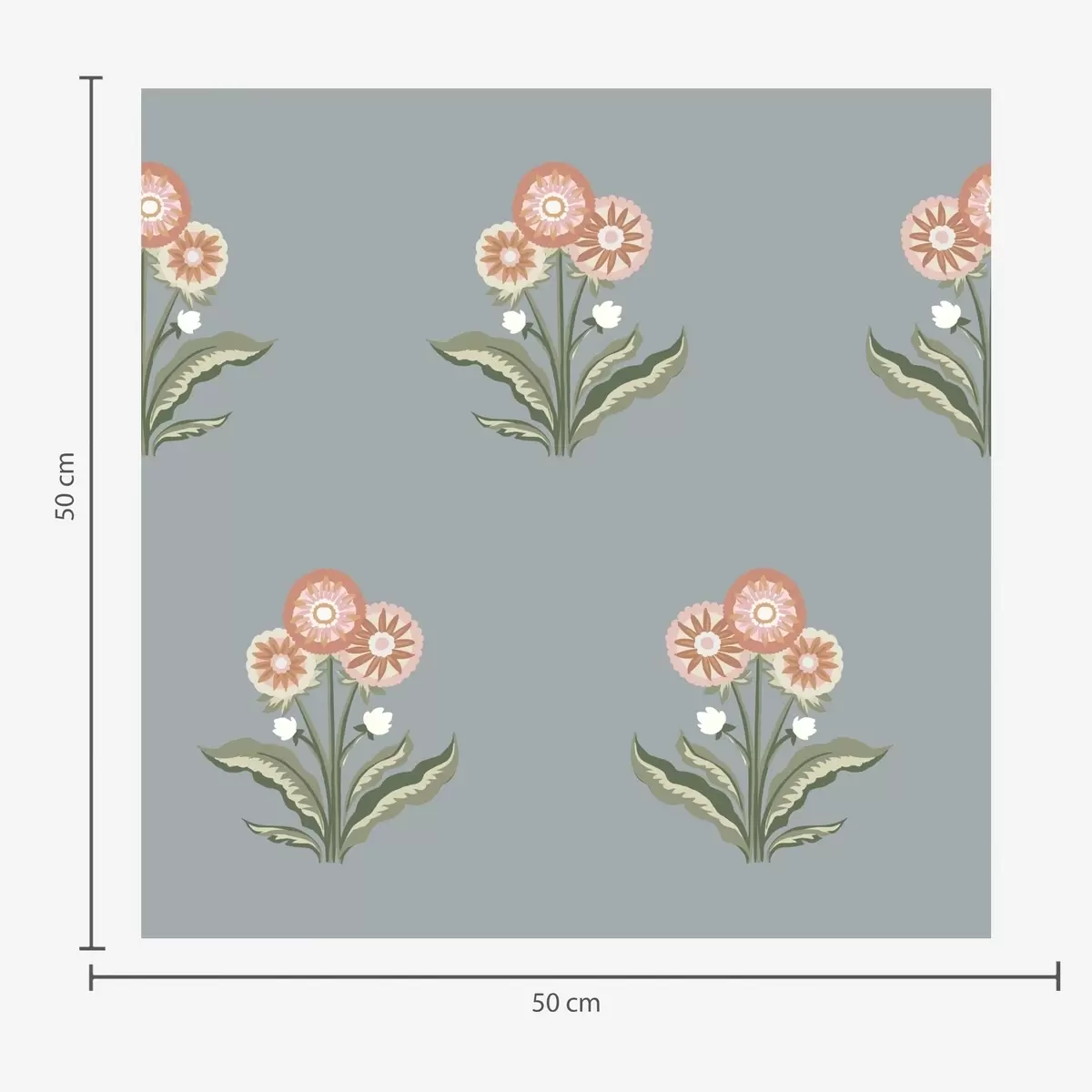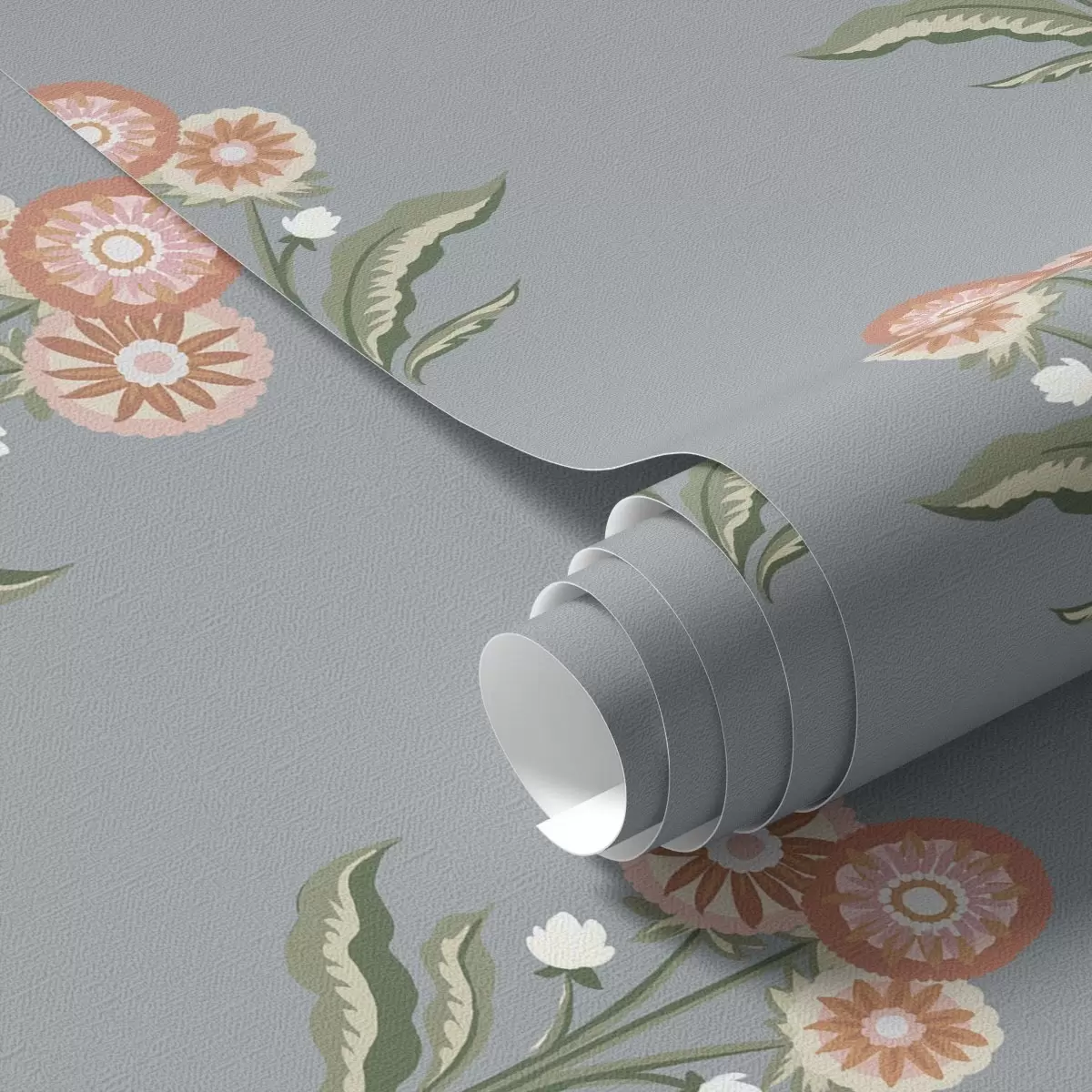 Tapete Stilisierte Blumen auf grau-blauem Hintergrund, warme Farbpalette Nr. a00494