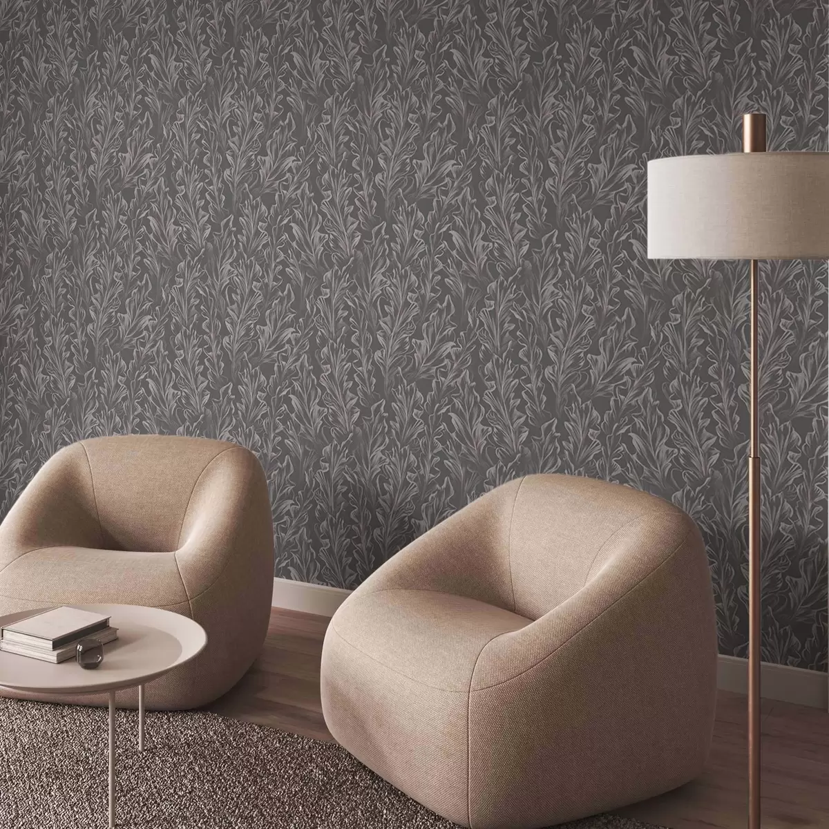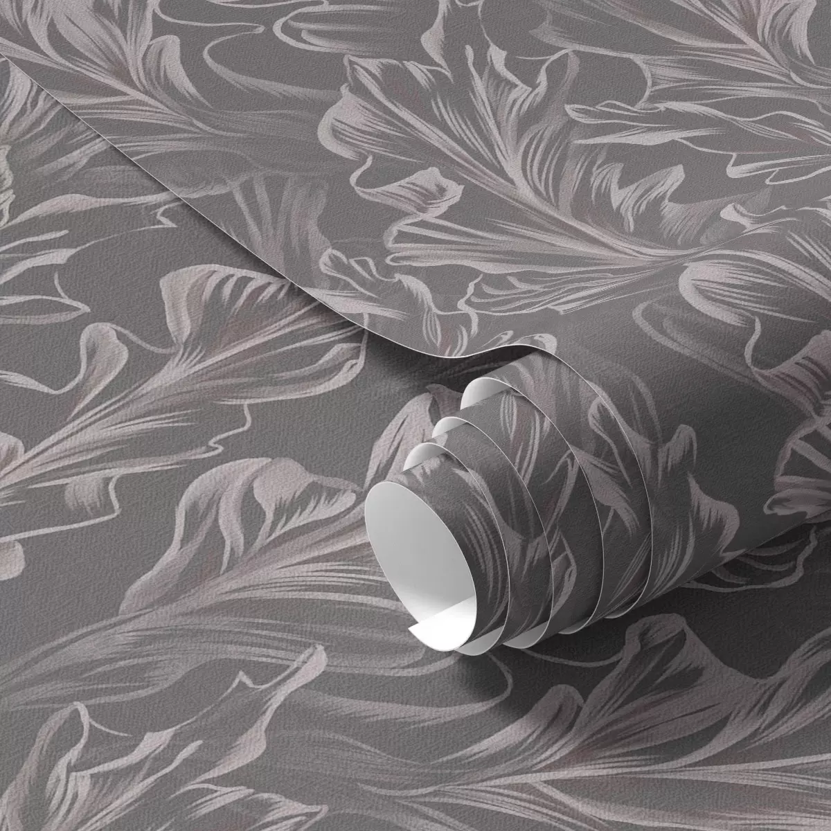 Tapete Fließende Blattwellen auf graphitfarbenem Hintergrund, hoher Kontrast Nr. a00495v1