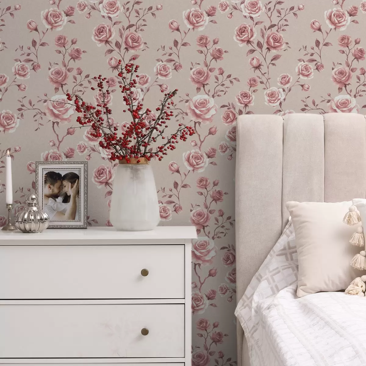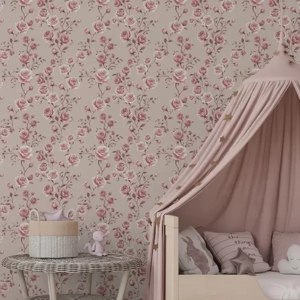 Tapete Pudrige Rosen auf Beige – Vintage-Muster Nr. a00497