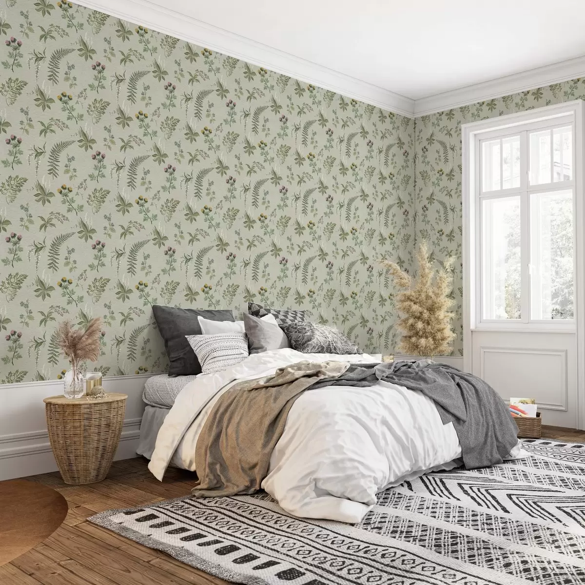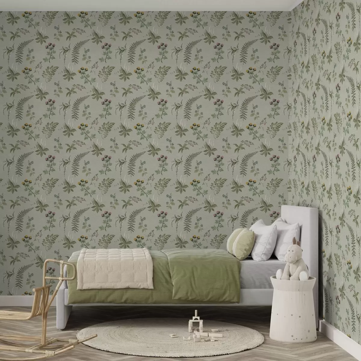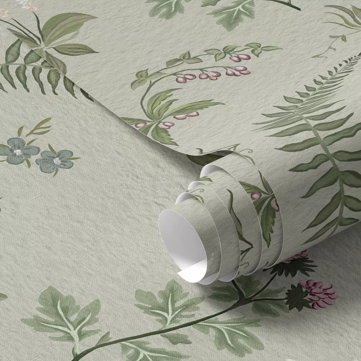 Tapete Botanische Gräser und Farne auf hellgrauem Grün Nr. a00498