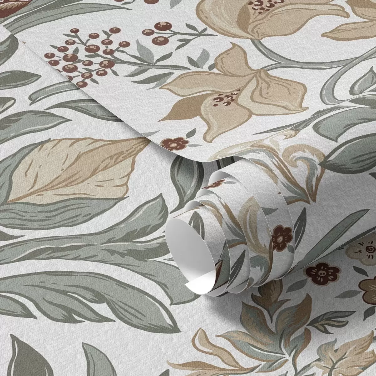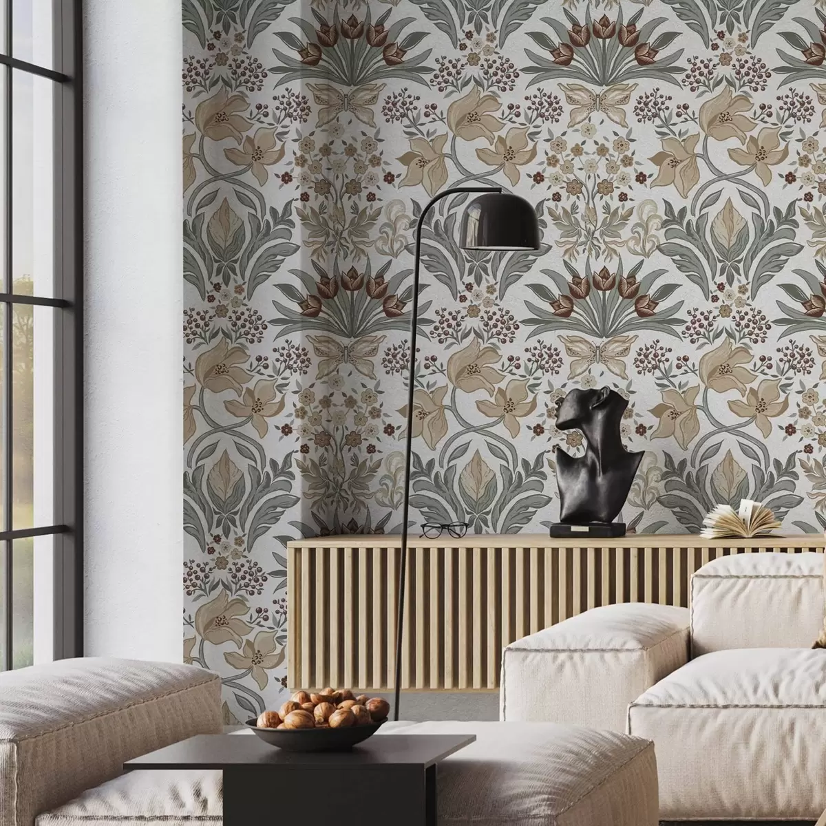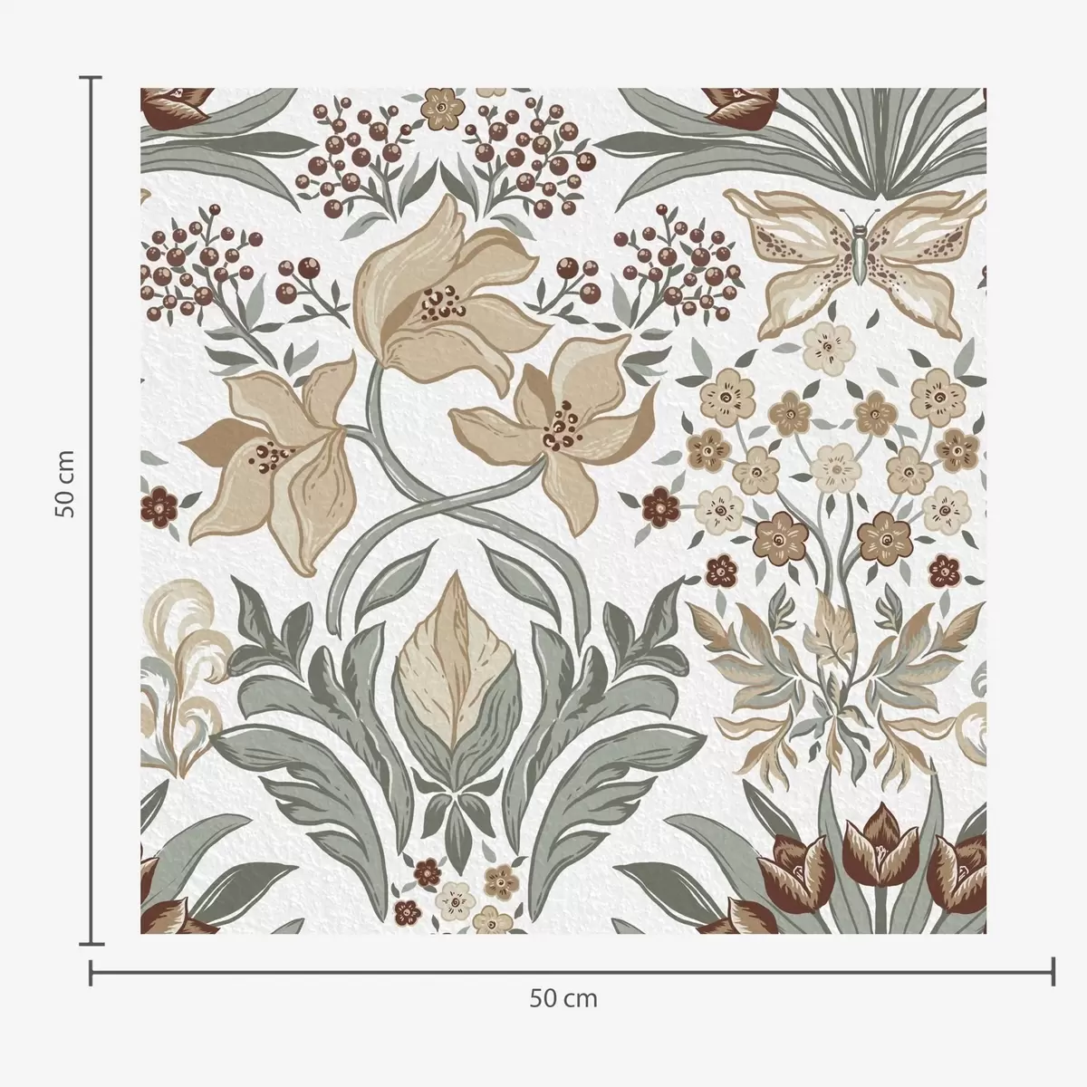 Tapete Dekorative Lilien und ein Schmetterling auf weißem Hintergrund Nr. a00500v1