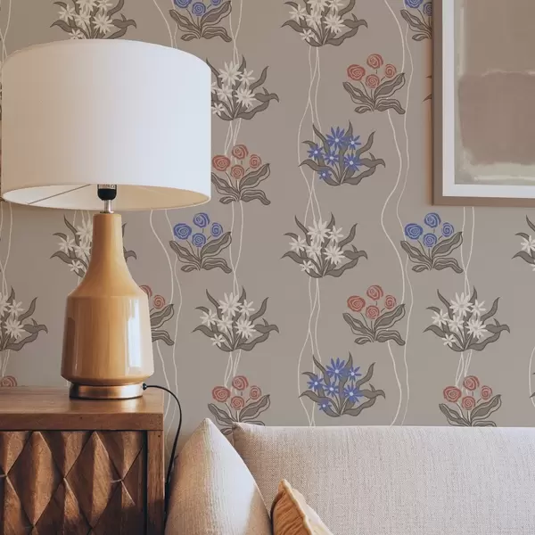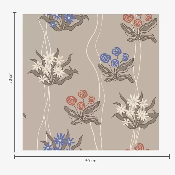 Tapete Retro-Blumen mit Wellenlinien auf warmem Beige Nr. a00503