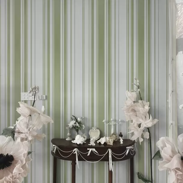 Tapete Grüne, unterschiedlich breite Streifen auf hellem Hintergrund Nr. a00523