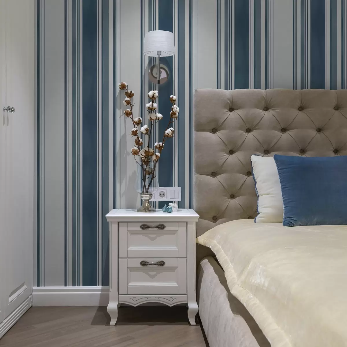 Tapete Blaue Streifen mit weißen Lücken Nr. a00525