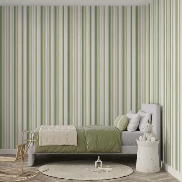 Tapete Grün und beige gestreift mit gelben Akzentlinien Nr. a00531