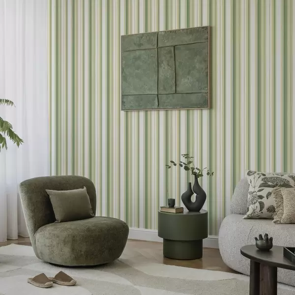 Tapete Grün und beige gestreift mit gelben Akzentlinien Nr. a00531