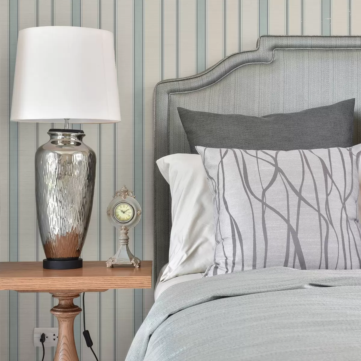 Tapete Blaue und graue Streifen auf einem cremefarbenen Hintergrund Nr. a00555