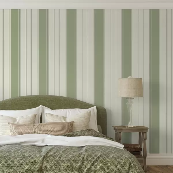 Tapete Cremefarbener Hintergrund mit breiten hellgrünen Streifen Nr. a00561