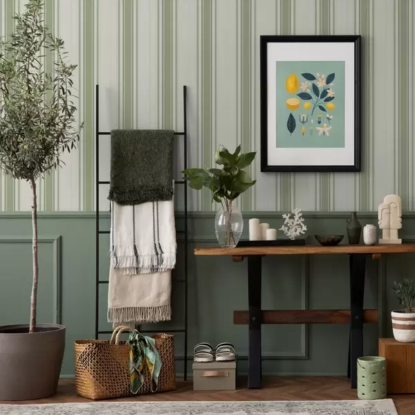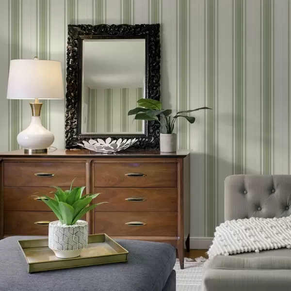 Tapete Heller Hintergrund mit dunkelgrünen Akzentstreifen Nr. a00562