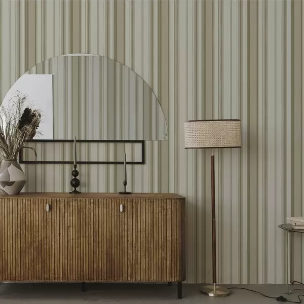 Tapete Cremefarbener Hintergrund mit grau-beigen vertikalen Streifen Nr. a00564