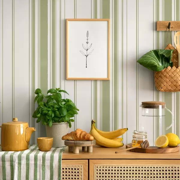 Tapete Grüne vertikale Streifen von unterschiedlicher Breite Nr. a00565
