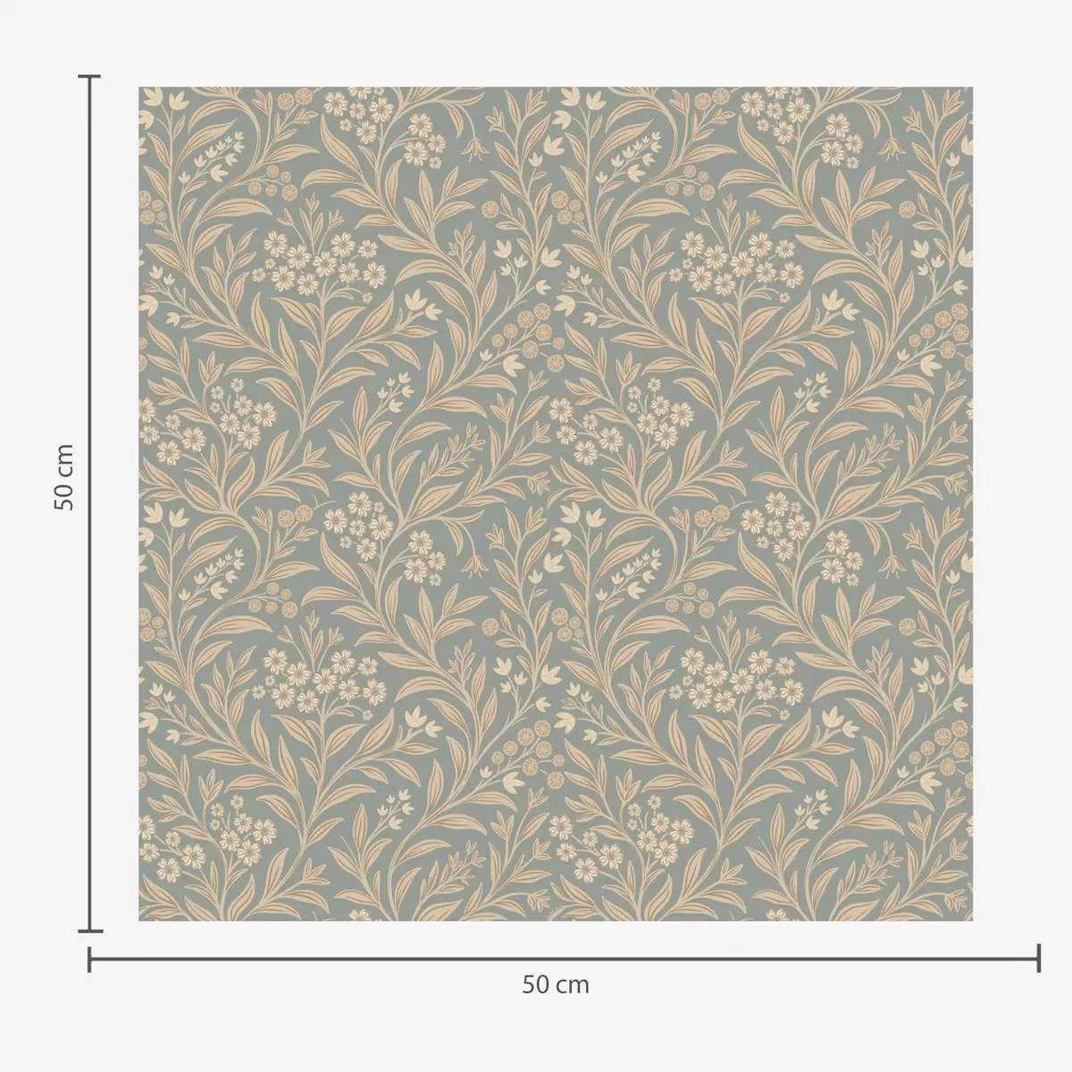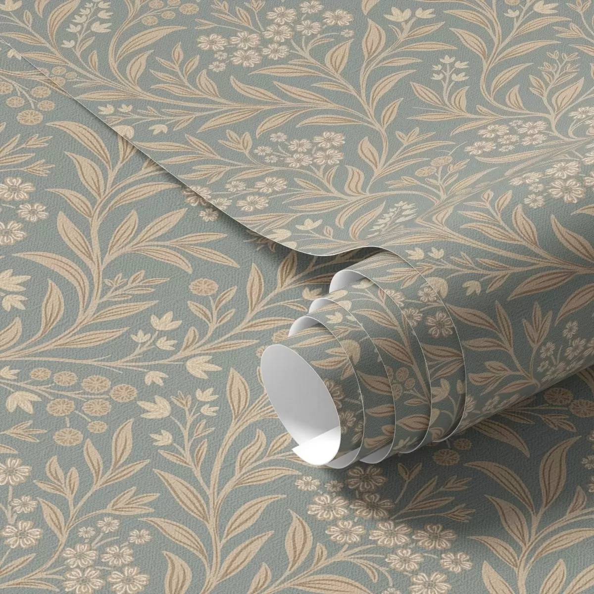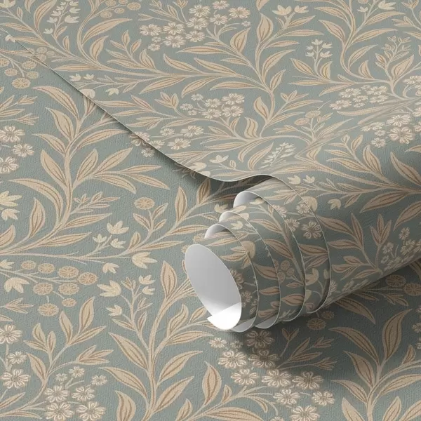 Tapete Morris-Stil: beigefarbene Zweige auf graugrünem Hintergrund Nr. a00569