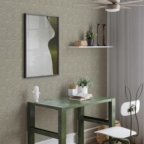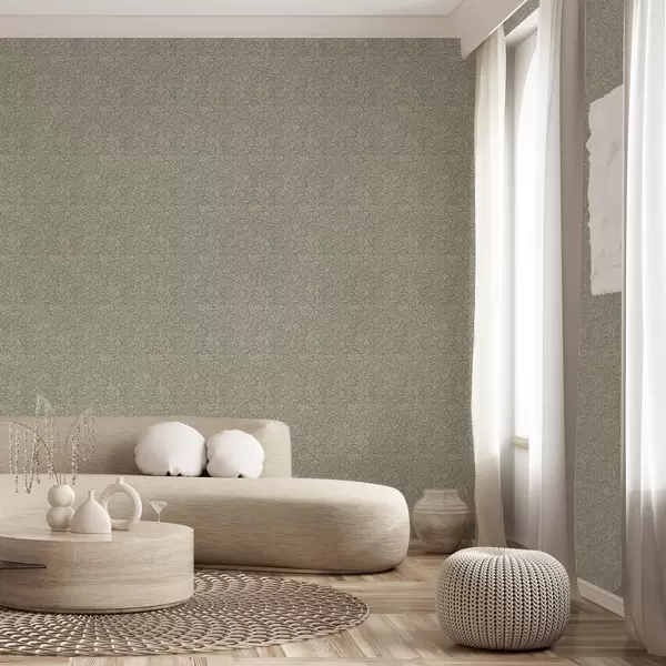 Tapete Morris-Stil: beigefarbene Zweige auf graugrünem Hintergrund Nr. a00569