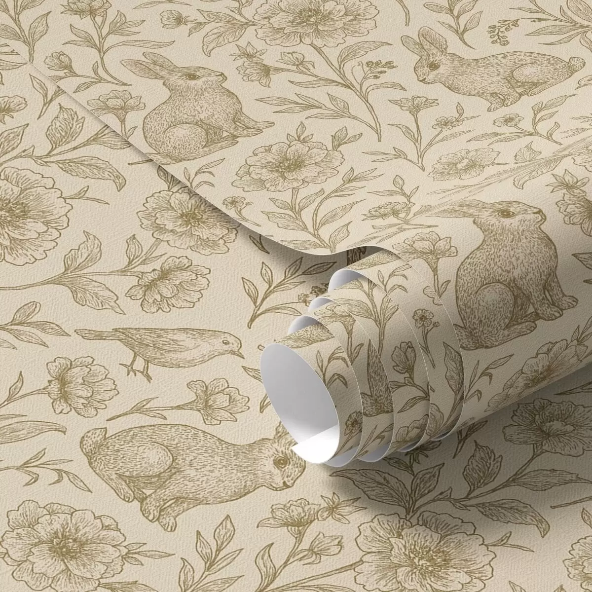 Tapete Kaninchen und Vögel in einem Blumenmuster Nr. a00571