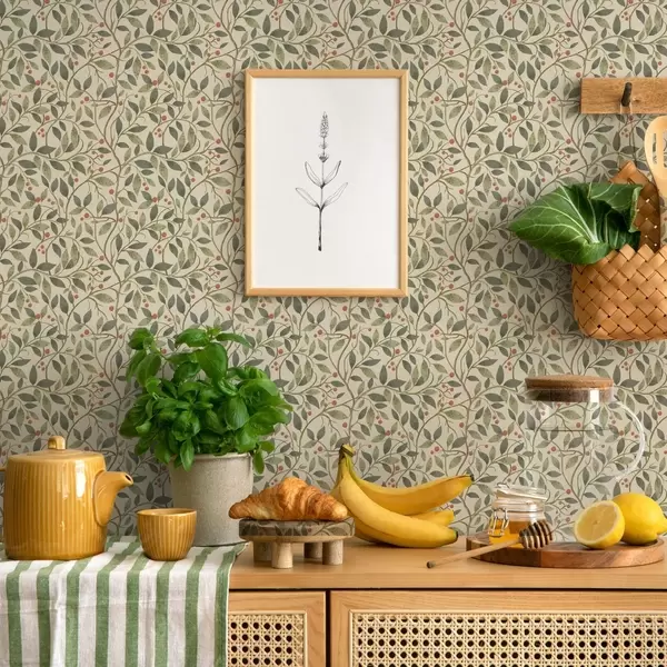 Tapete Olivenzweige mit Beeren auf warmem, hellem Hintergrund Nr. a00573