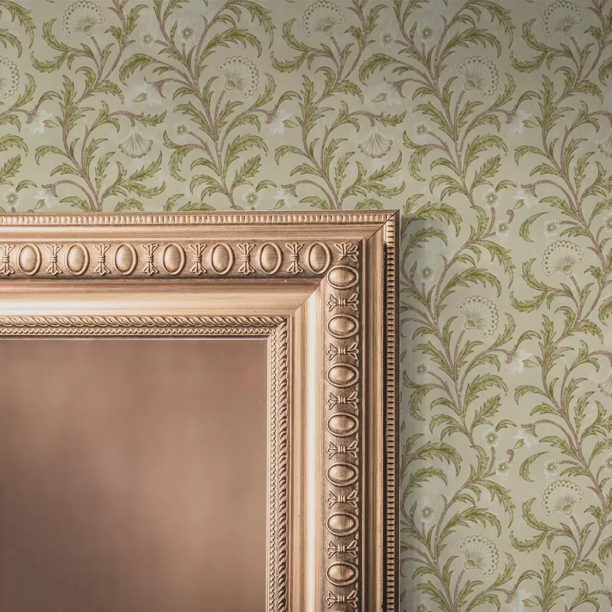 Tapete Vintage-Ornament mit Schnörkeln und Blumen, beige und olivgrün Nr. a00574