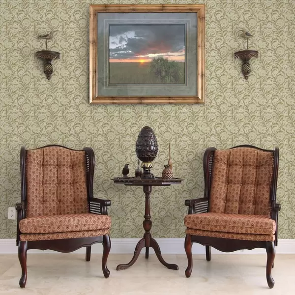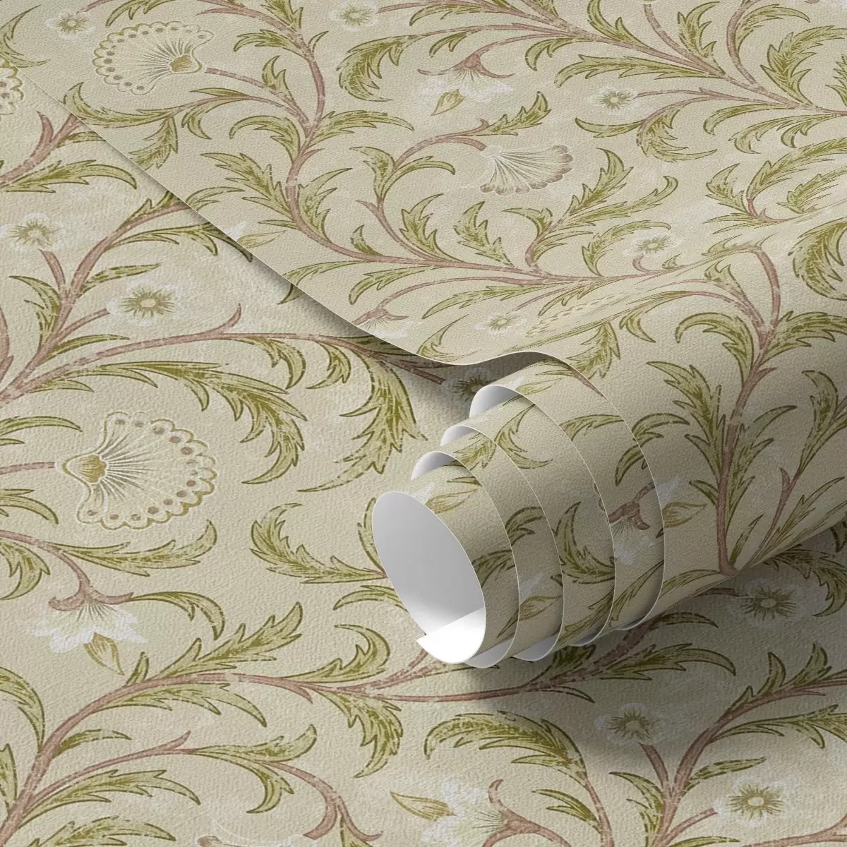 Tapete Vintage-Ornament mit Schnörkeln und Blumen, beige und olivgrün Nr. a00574