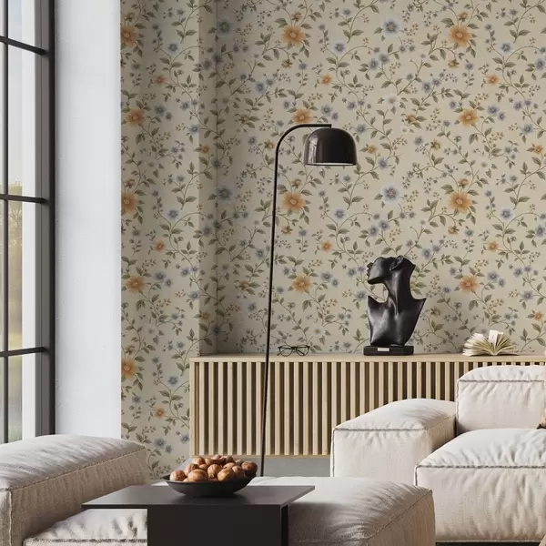 Tapete Blumenzweige mit blauen und pfirsichfarbenen Blüten Nr. a00575