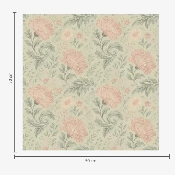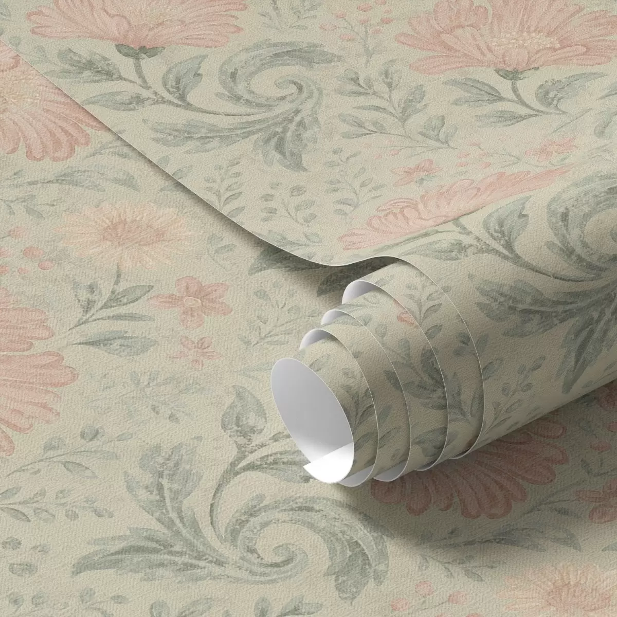 Tapete Große Vintage-Pfirsichblüten mit Salbeiblättern Nr. a00580